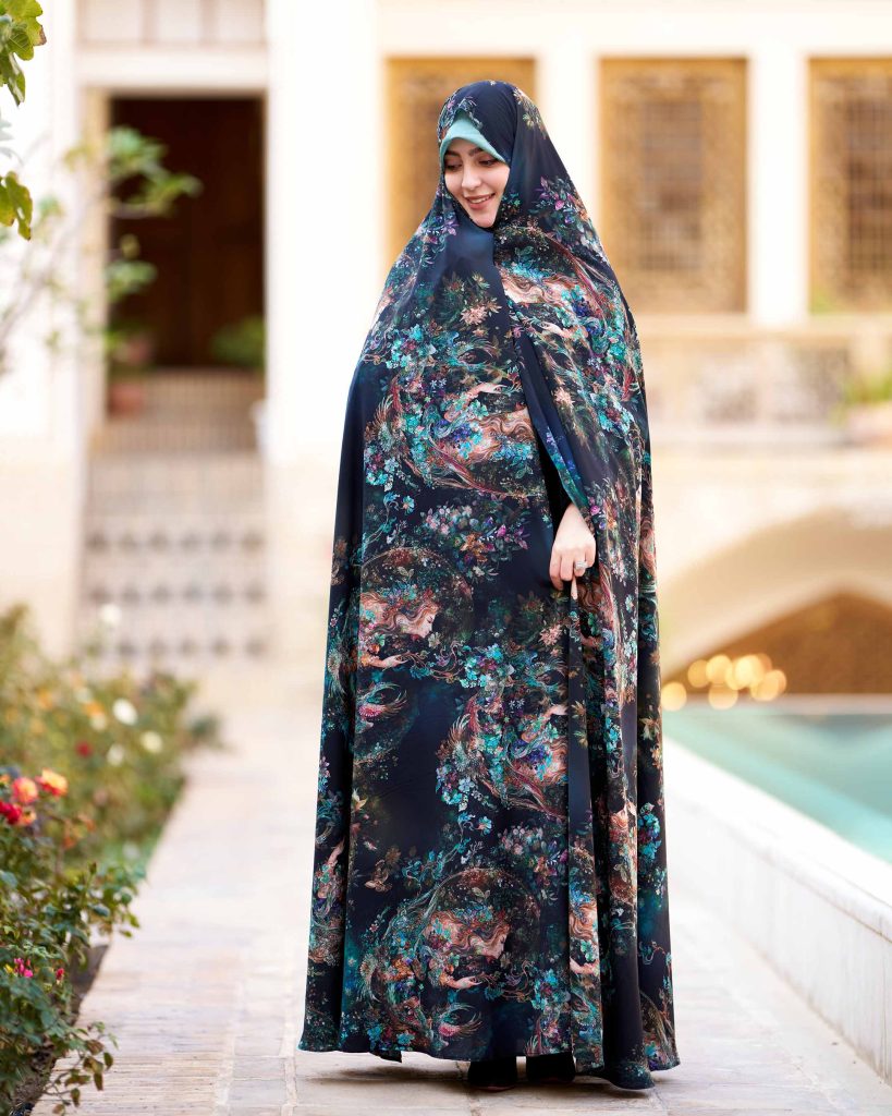 1,900,000 تومانچادر رنگی سنتي زمینه مشکی آبی طرح باغ رضوان 3 كد CH315078