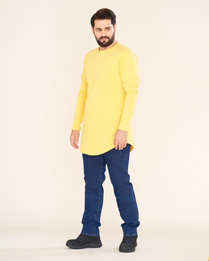 تیشرت لانگ با مچ رنگ زرد (کدTS21023)