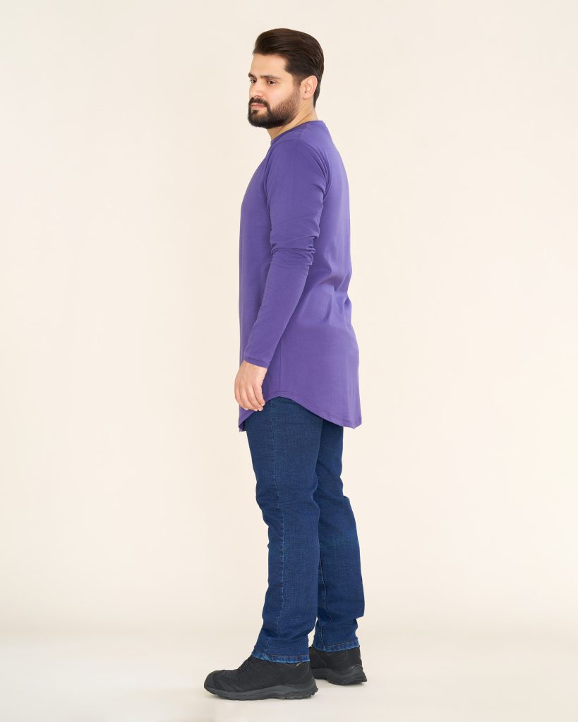 تیشرت لانگ با مچ رنگ بنفش (کدTS21027)