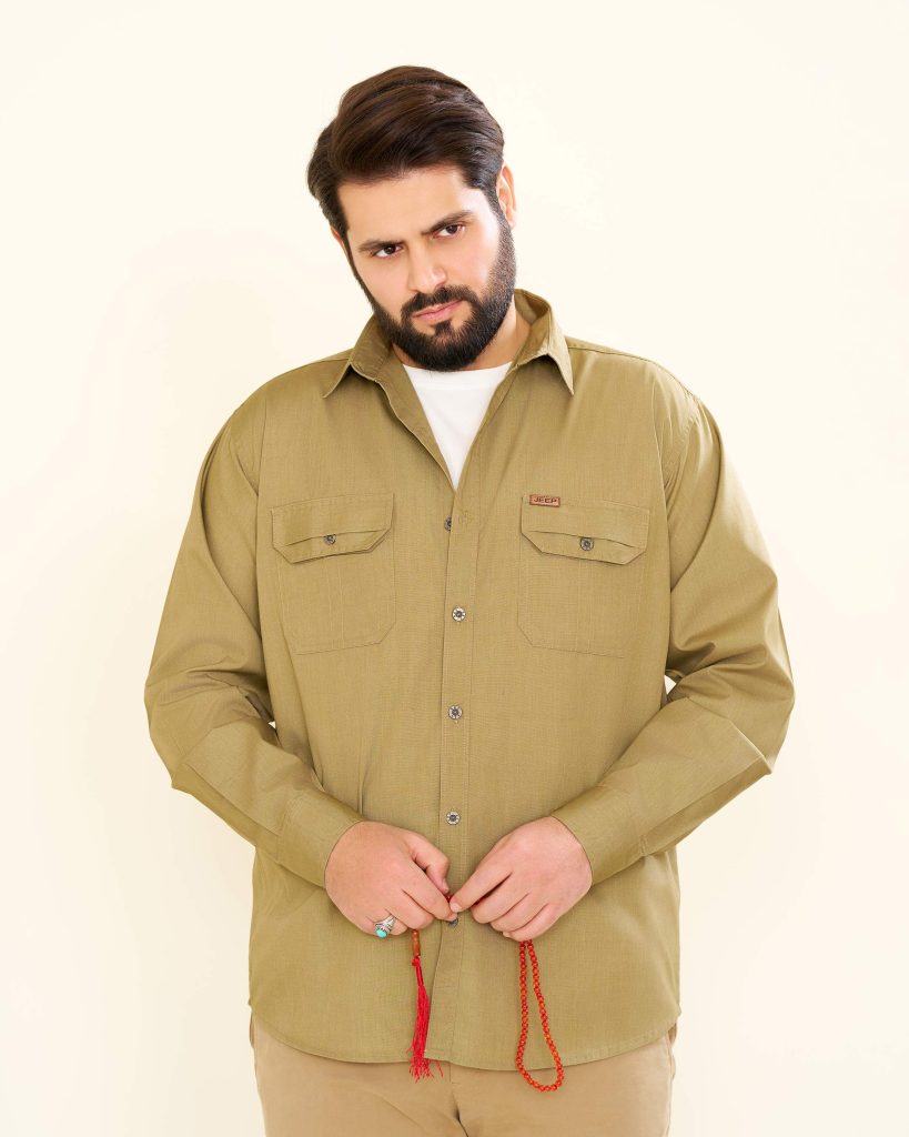 1,350,000 تومانپیراهن کتان دوجیب طرح JEEP زمینه رنگ خاکی(PD12051)