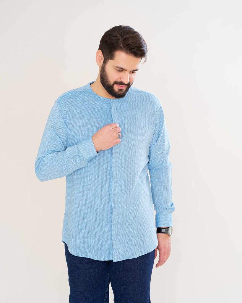 1,100,000 تومان – 1,050,000 تومانPrice range: 1,050,000 تومان through 1,100,000 تومانپیراهن عربی بدون یقه مدل هادی پارچه جودون پنبه کد PS21112