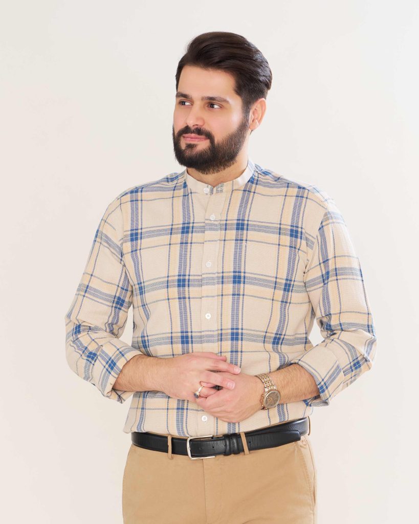 1,050,000 تومانپیراهن پنبه چهارخانه زمینه کرم یقه فرنچ کد PS21161