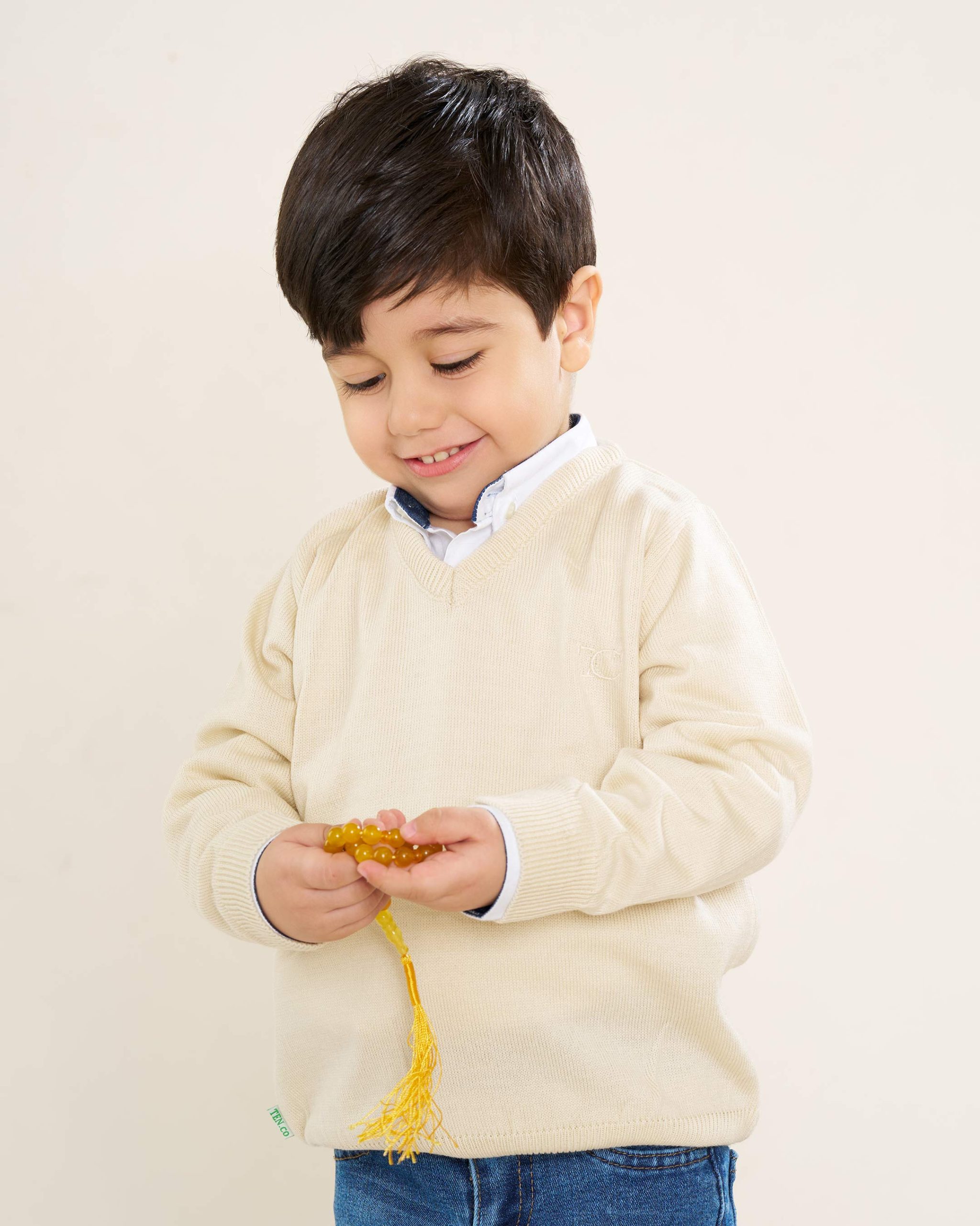 بلوز بافت بچگانه رنگ کرم کد PU41024