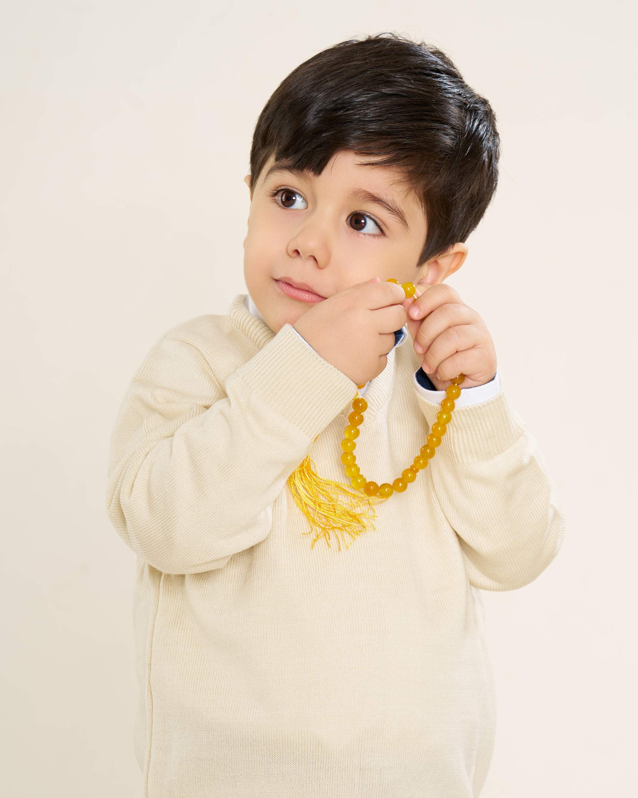 این بلوز بافت کلاسیک بچهگانه با یقههفت، طراحی شده تا همان سادگی و وقار همیشگی عصر عاشورا را، در تن کودک شما بنشاند.