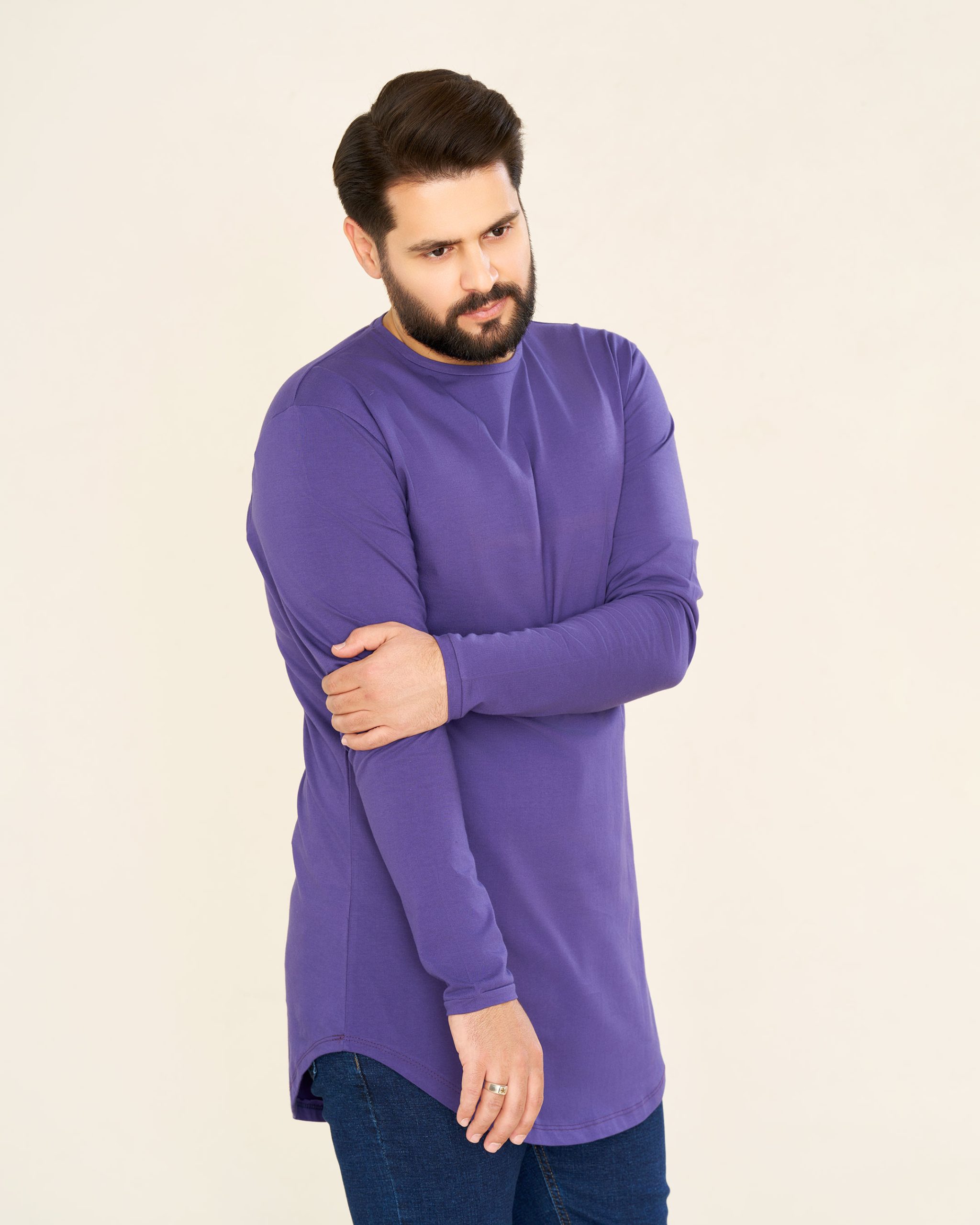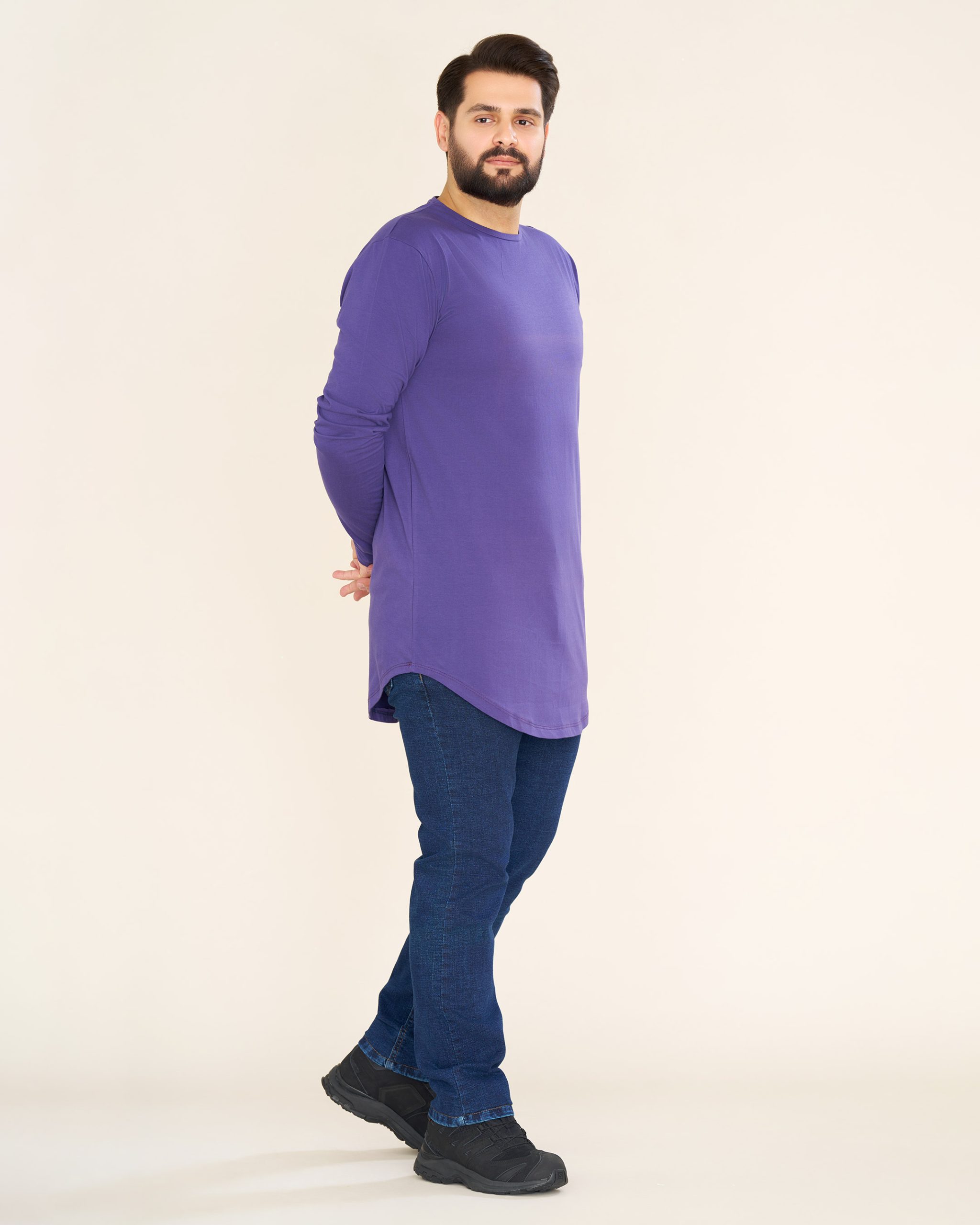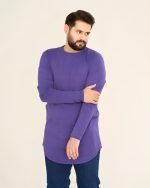 تیشرت لانگ با مچ رنگ بنفش (کدTS21027)