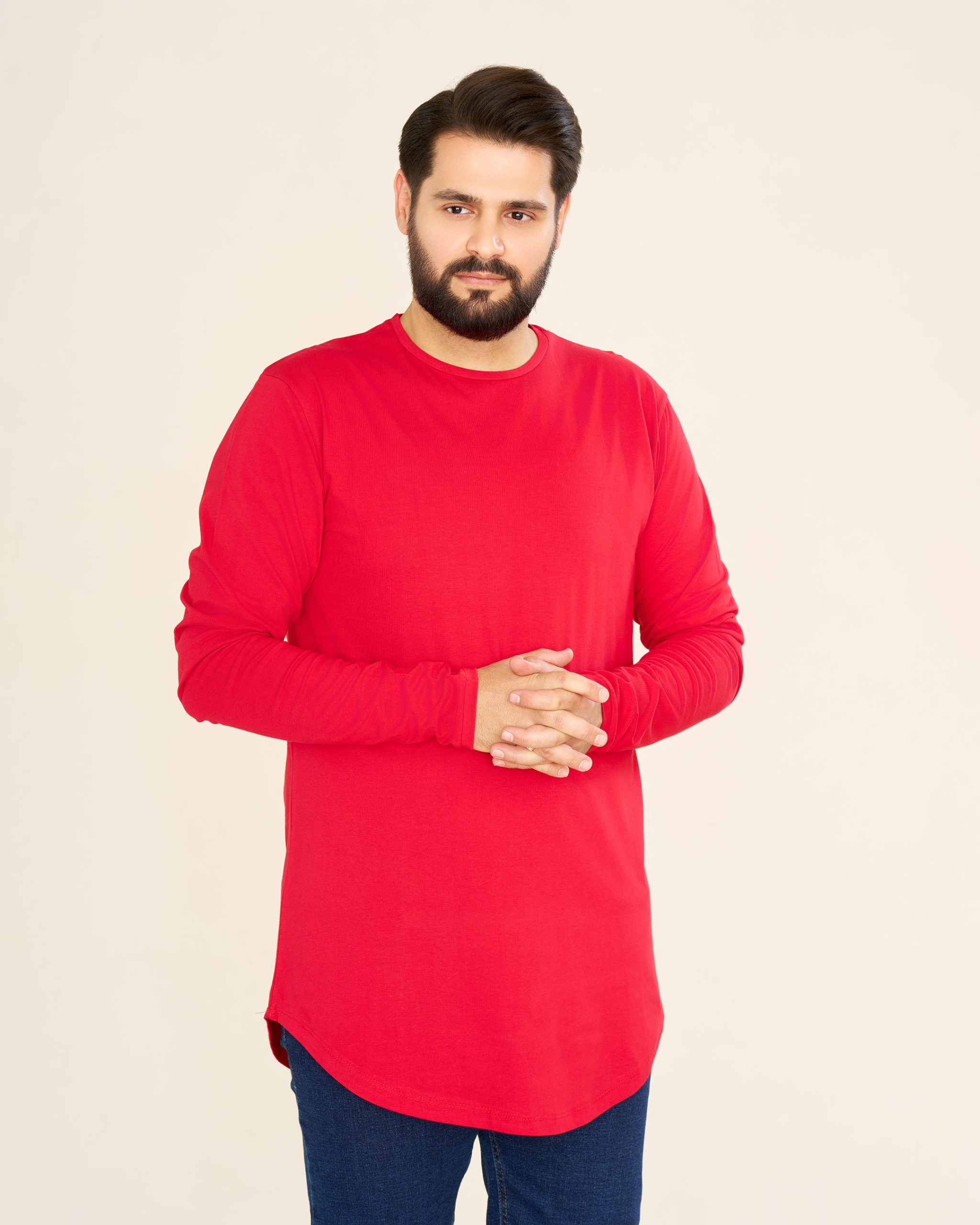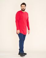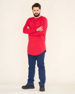 تیشرت لانگ با مچ رنگ قرمز (کدTS21026)