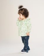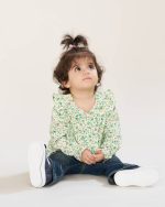 شومیز دخترانه آستین بلند طرح بهار یقه ب ب تمام دکمه زمینه سبز کد PB12088