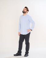 مدل هادی: بدون یقه، تمام دکمه، در دو نوع آستین کوتاه و آستین بلند. لبهی بالای پیراهن روی گردن مینشیند و حس سبکی و آزادگی میبخشد.