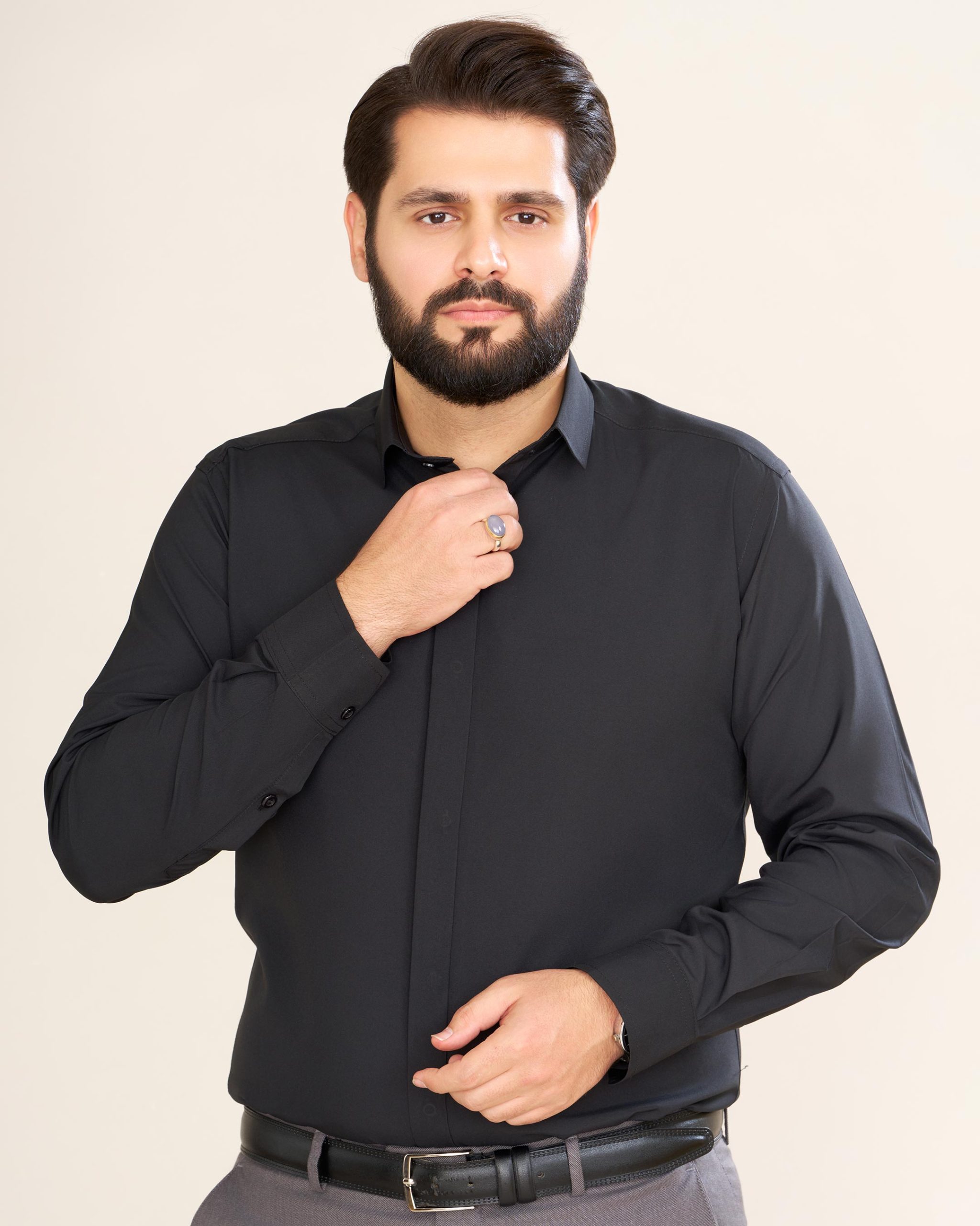 پیراهن یقه انگلیسی آستین بلند مشکی PM11014