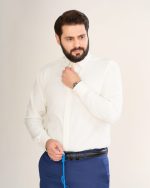 آستینهای بلند این کار دارای سرآستین رسمی با قابلیت استفاده از دکمه سردست هستند