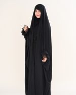 🖤 الگوی اصیل عربی: دوخته شده با همان فرم سنتی که بهزیبایی روی سر و شانه مینشیند و موجی آرام و نجیب در اطراف ایجاد میکند.