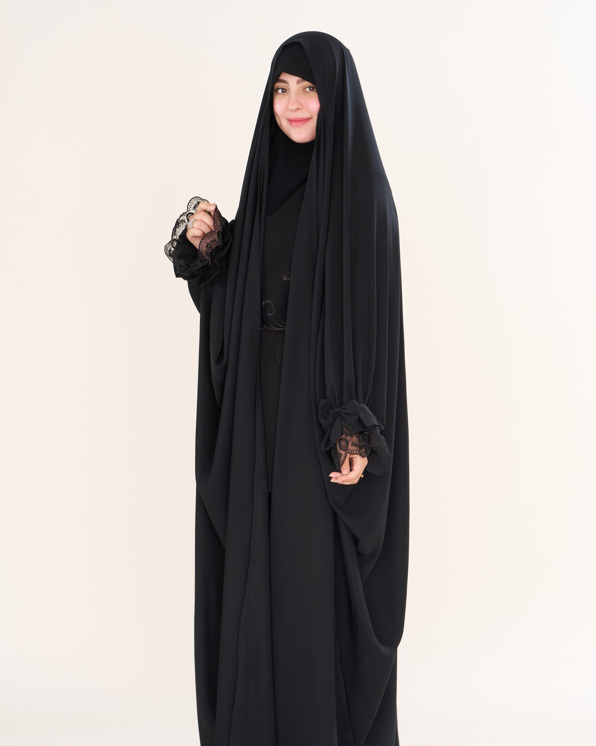 این چادر بر اساس الگوی اصیل عربی دوخته شده؛ الگویی که بهخاطر نوع برش و فرم خاصش، بهزیبایی روی سر و شانهها مینشیند و با هر قدم، موجی آرام و موقر در اطراف شما ایجاد میکند.