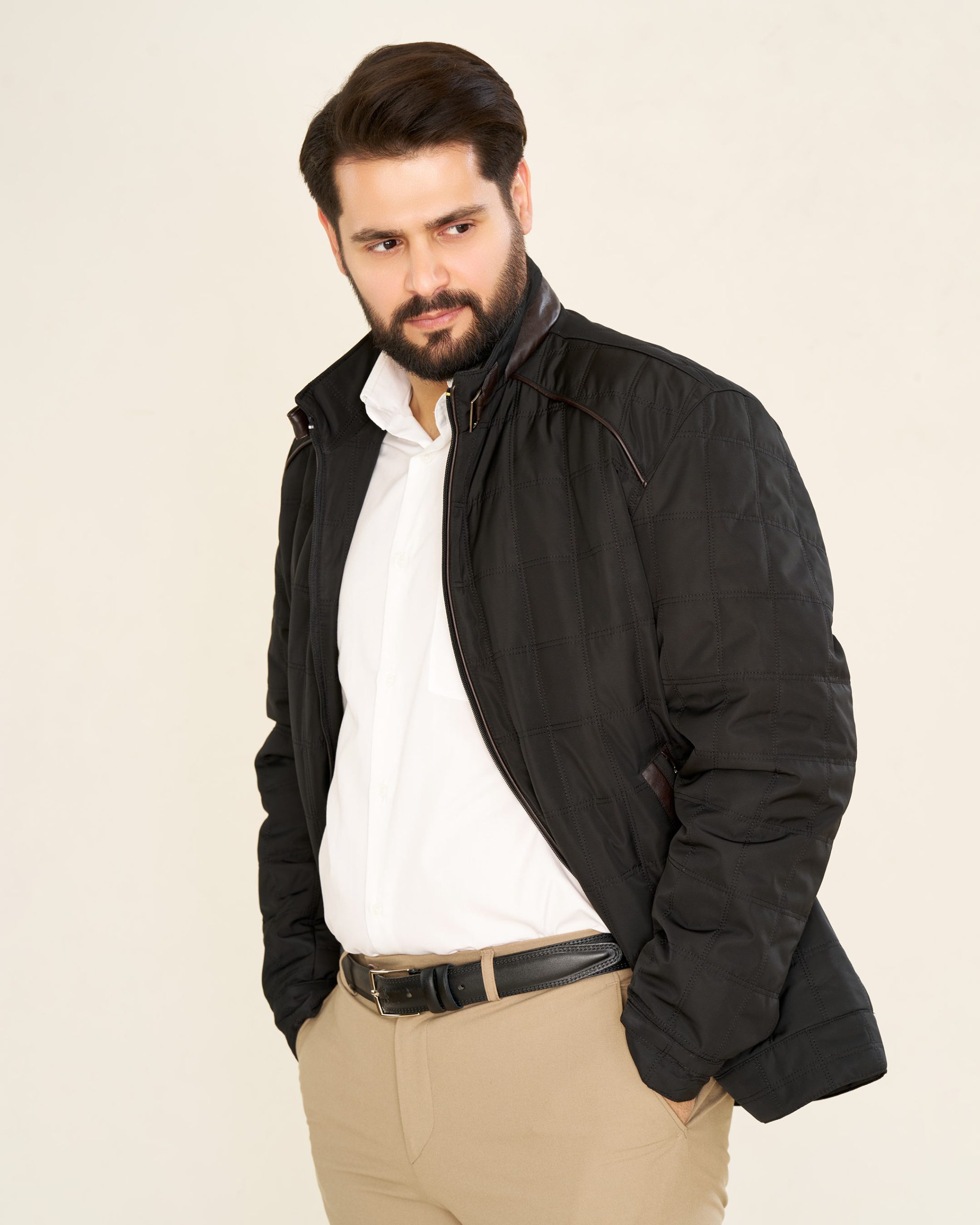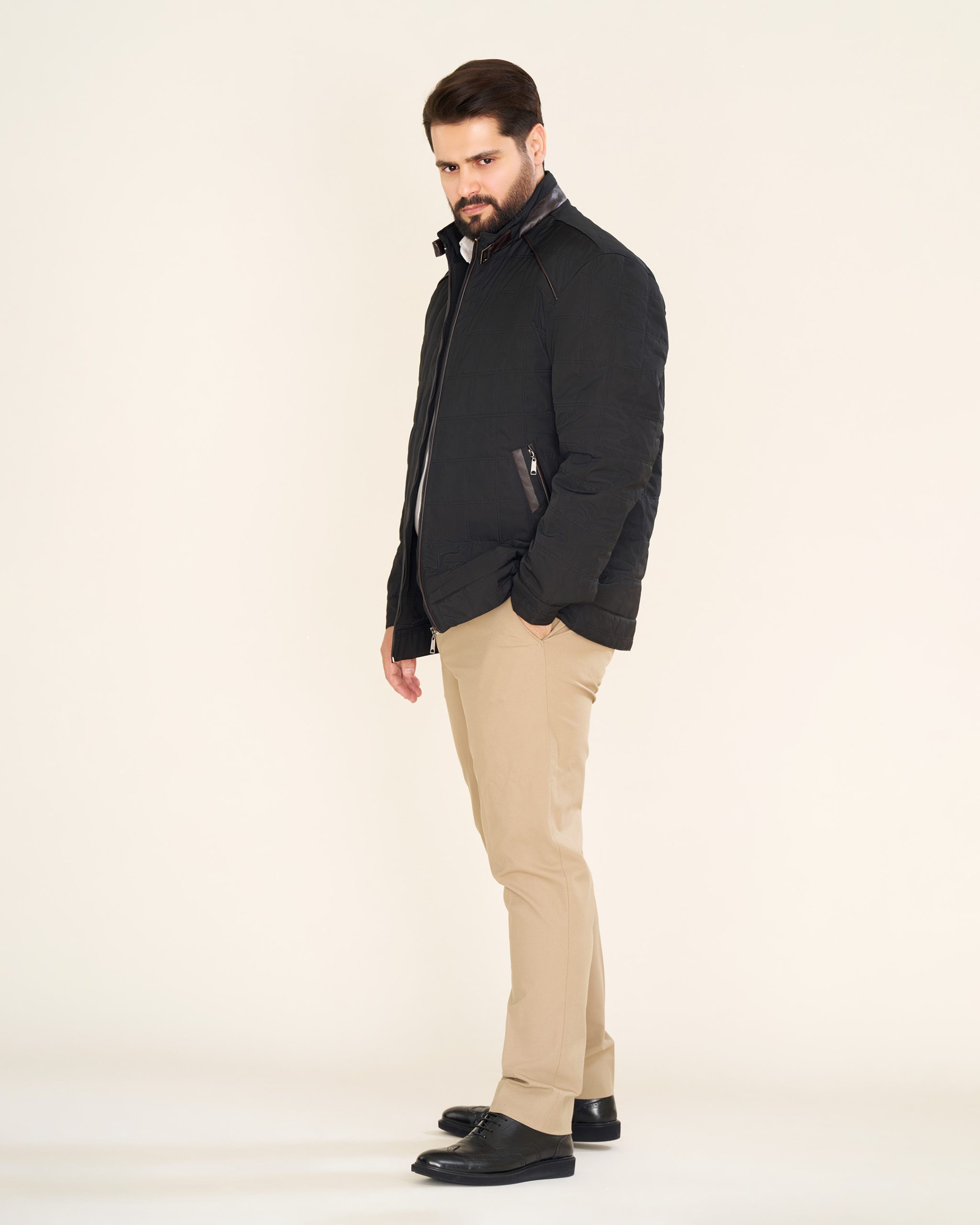 وجود قلاب چرمی در پشت یقه، و استفاده از تزئین چرمی در بخش جیبها و جلوی یقه، جزئیات ظریف و متفاوتی هستند که به این کاپشن جلوهای خاص دادهاند.