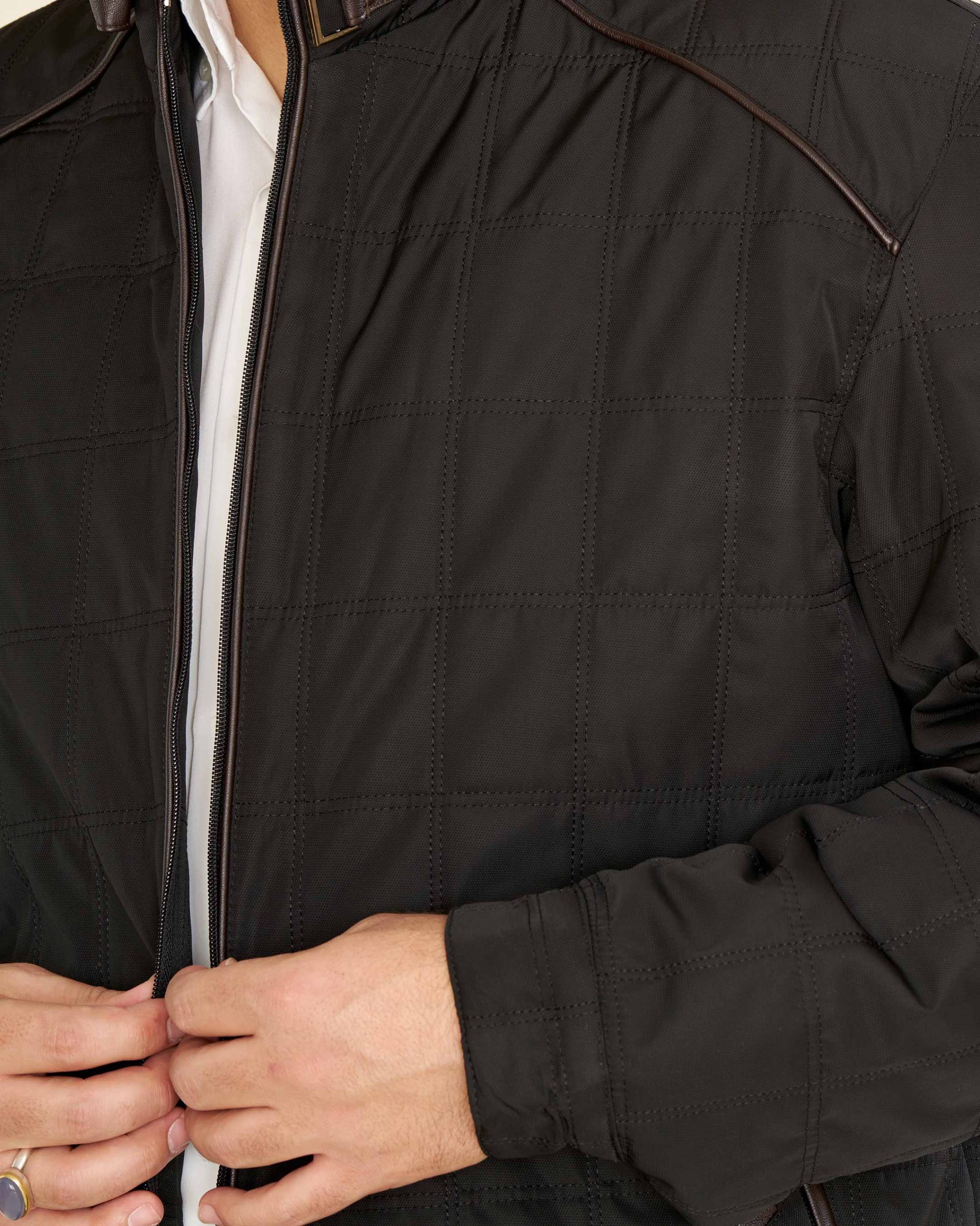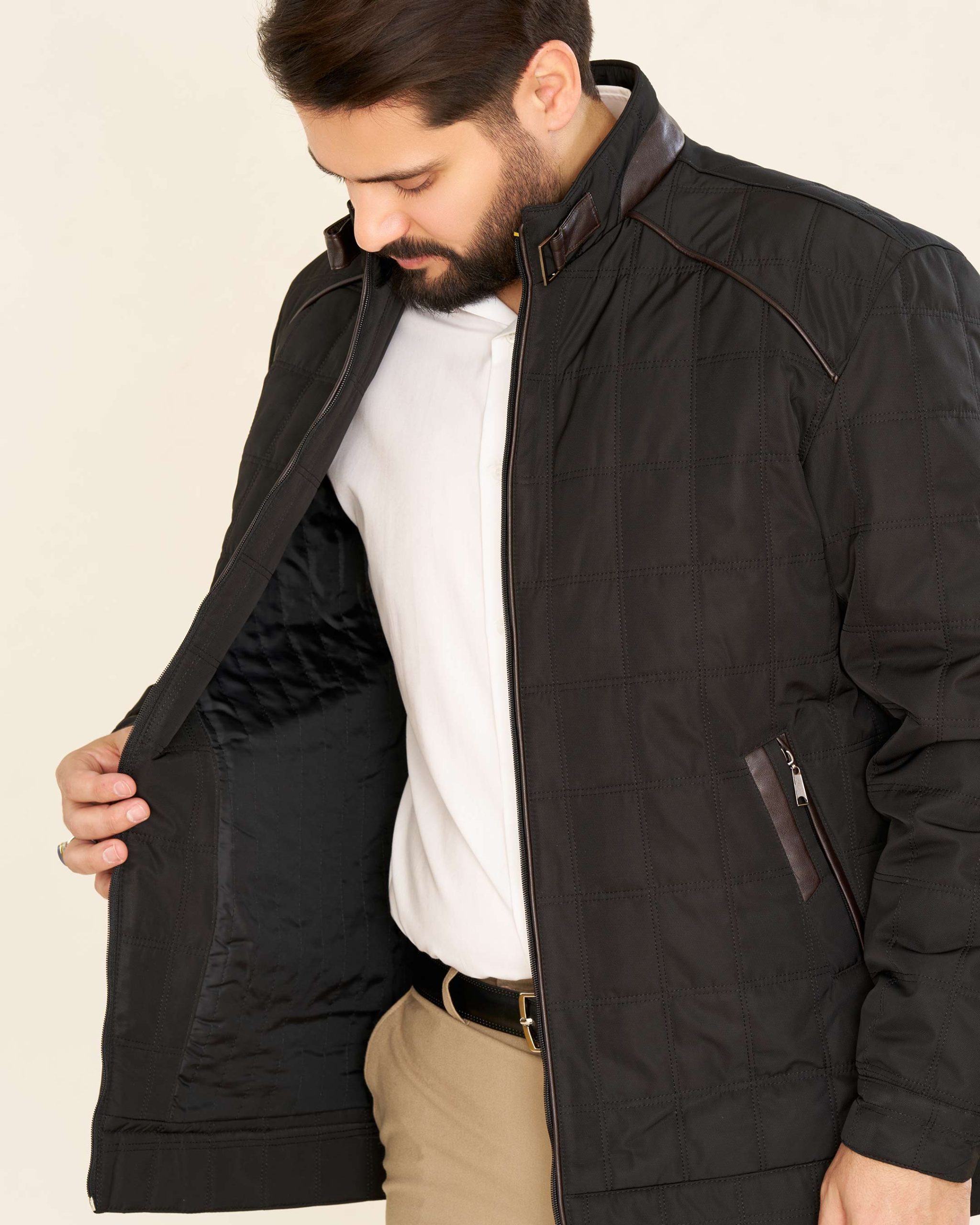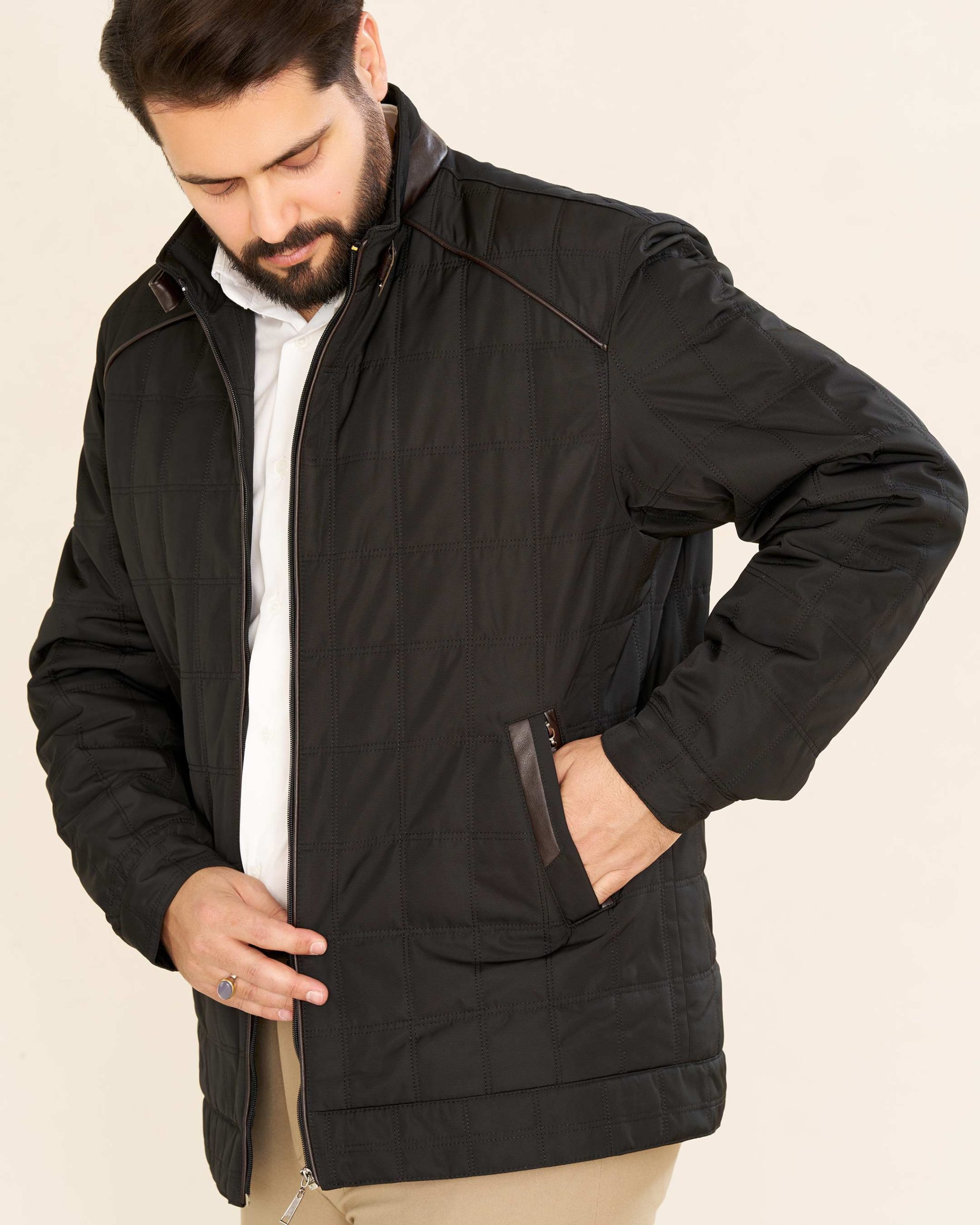 قسمت یقه و پایین کاپشن از چرم باکیفیت کار شده