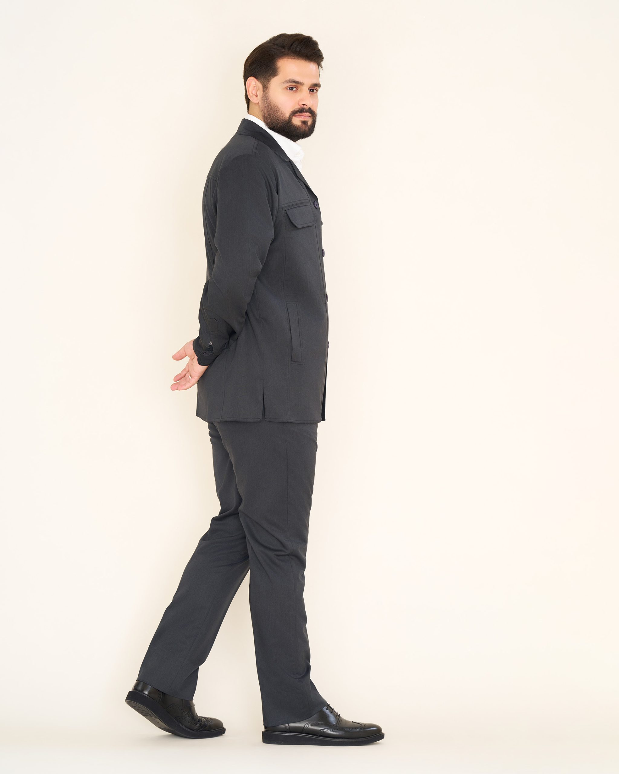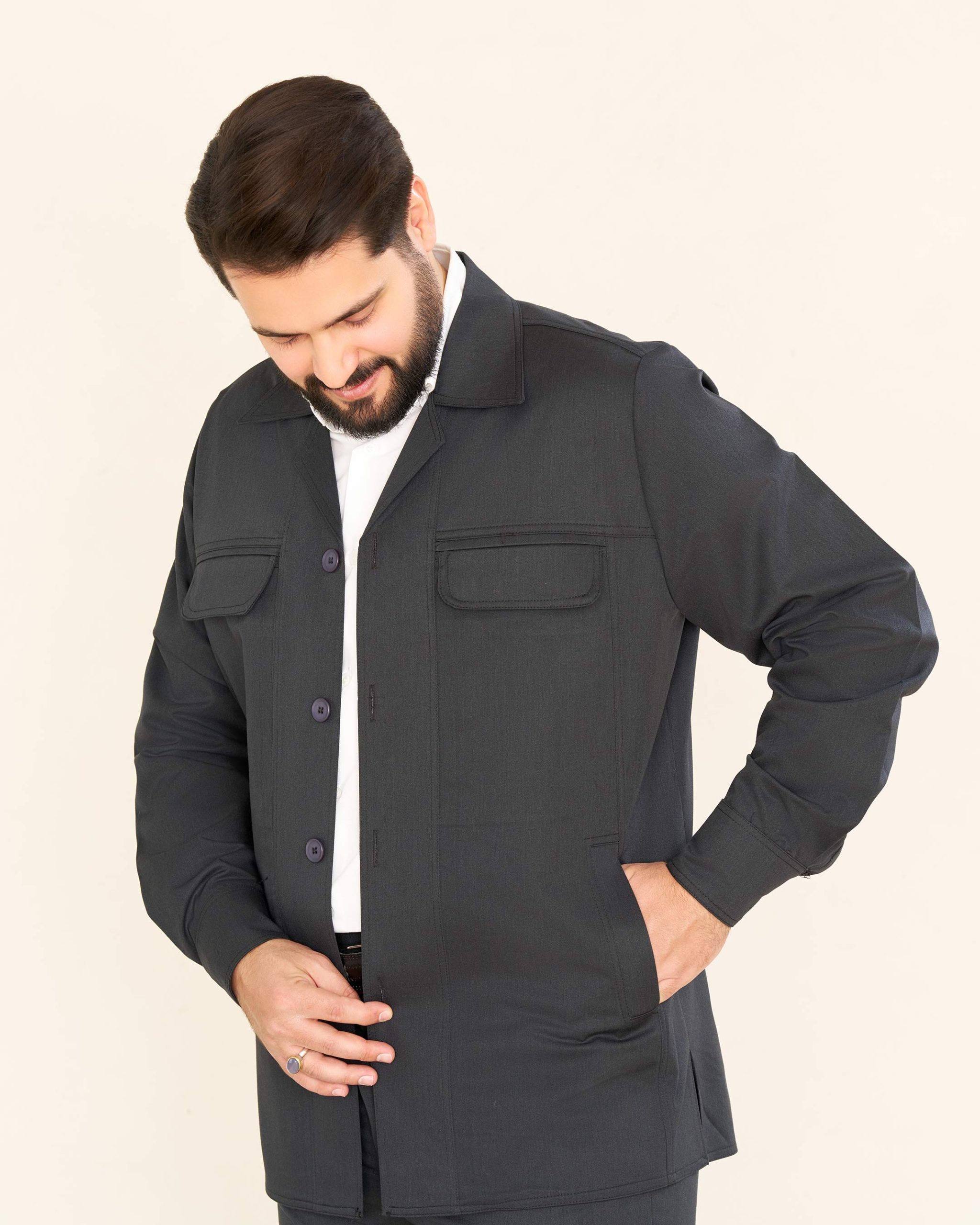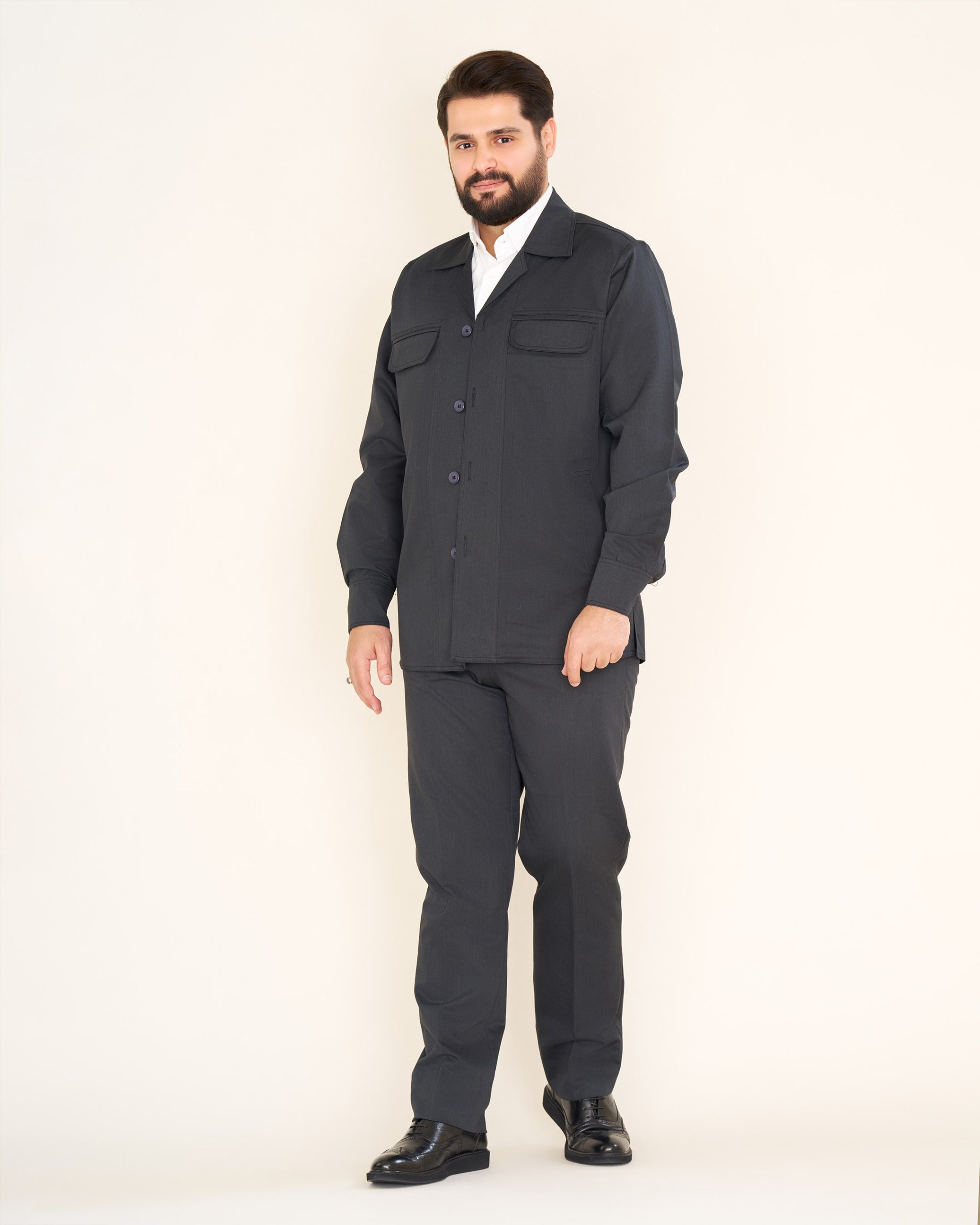 کت و شلوار سافاری مچ دار رنگ ذغالی کد KS12073