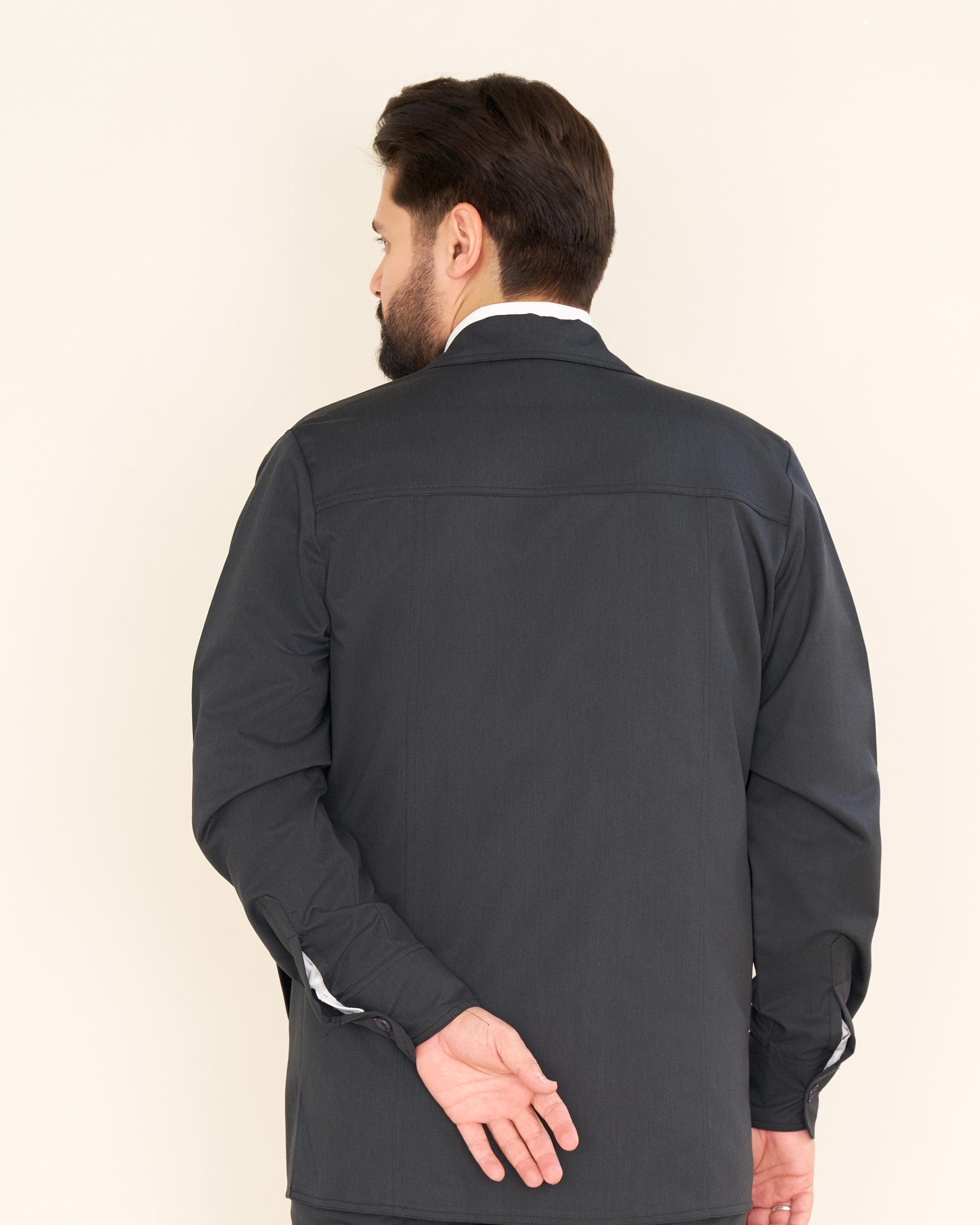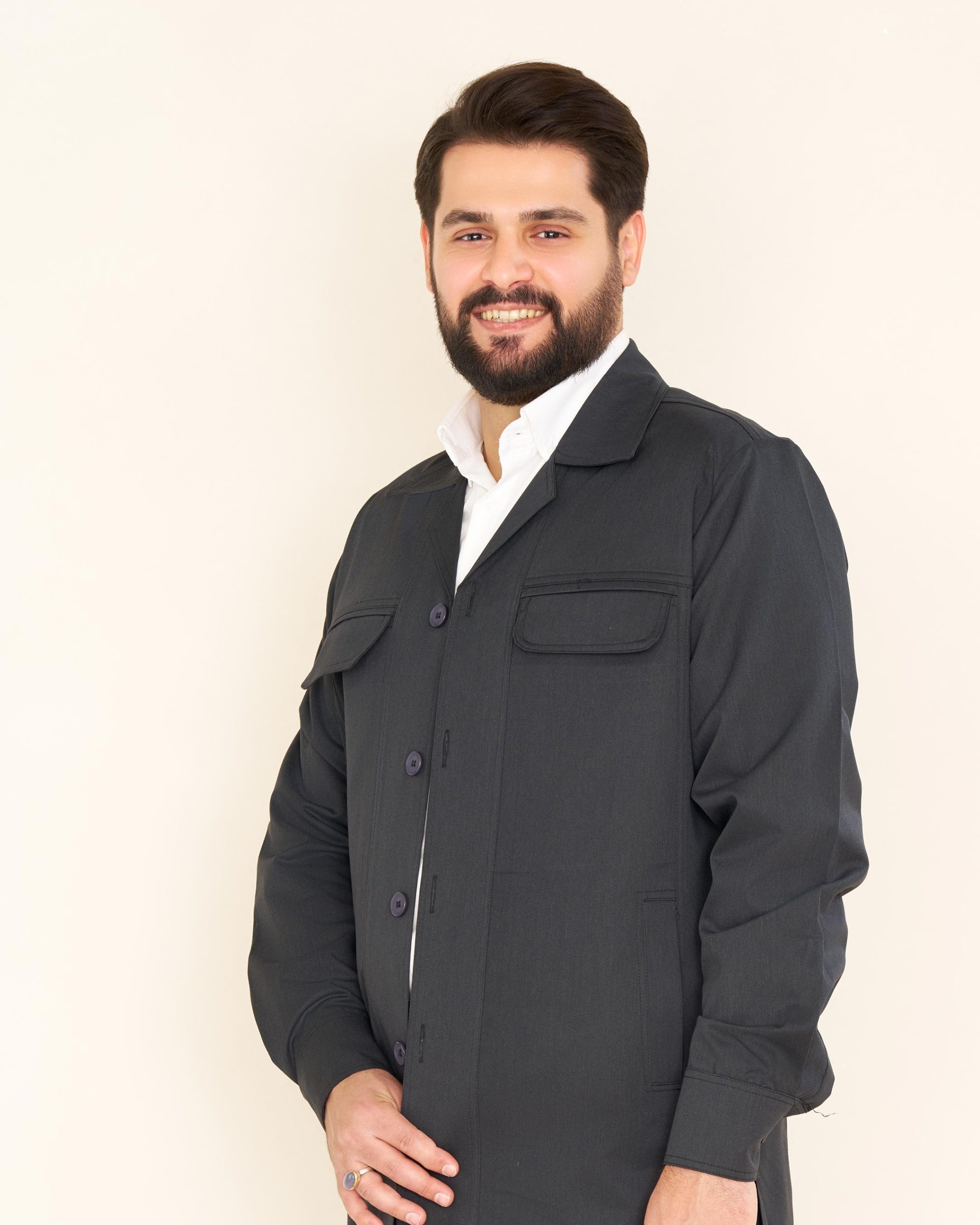 طراحی: چهار جیب بیرونی (دو بالا، دو پایین) – یقه برگردان کلاسیک