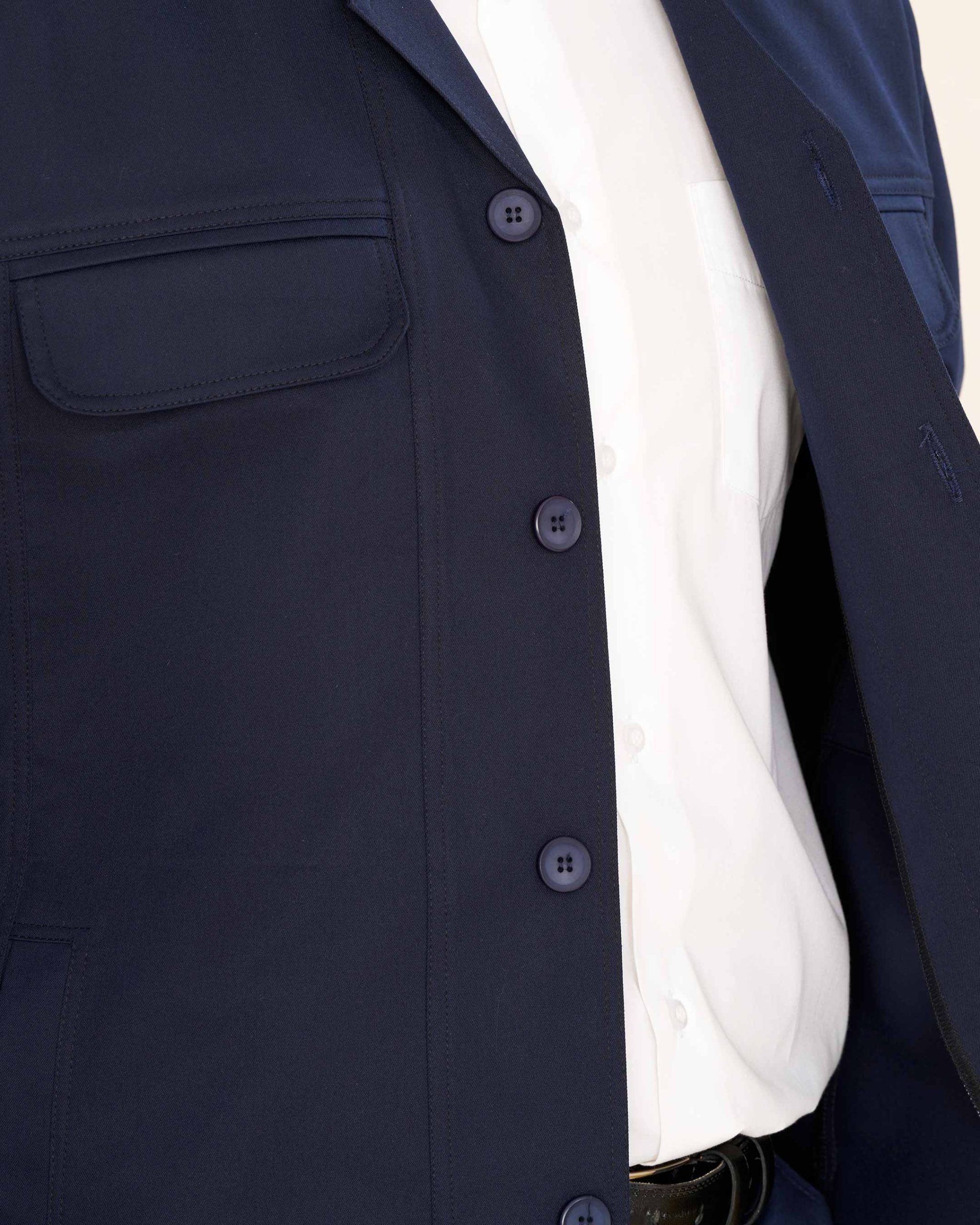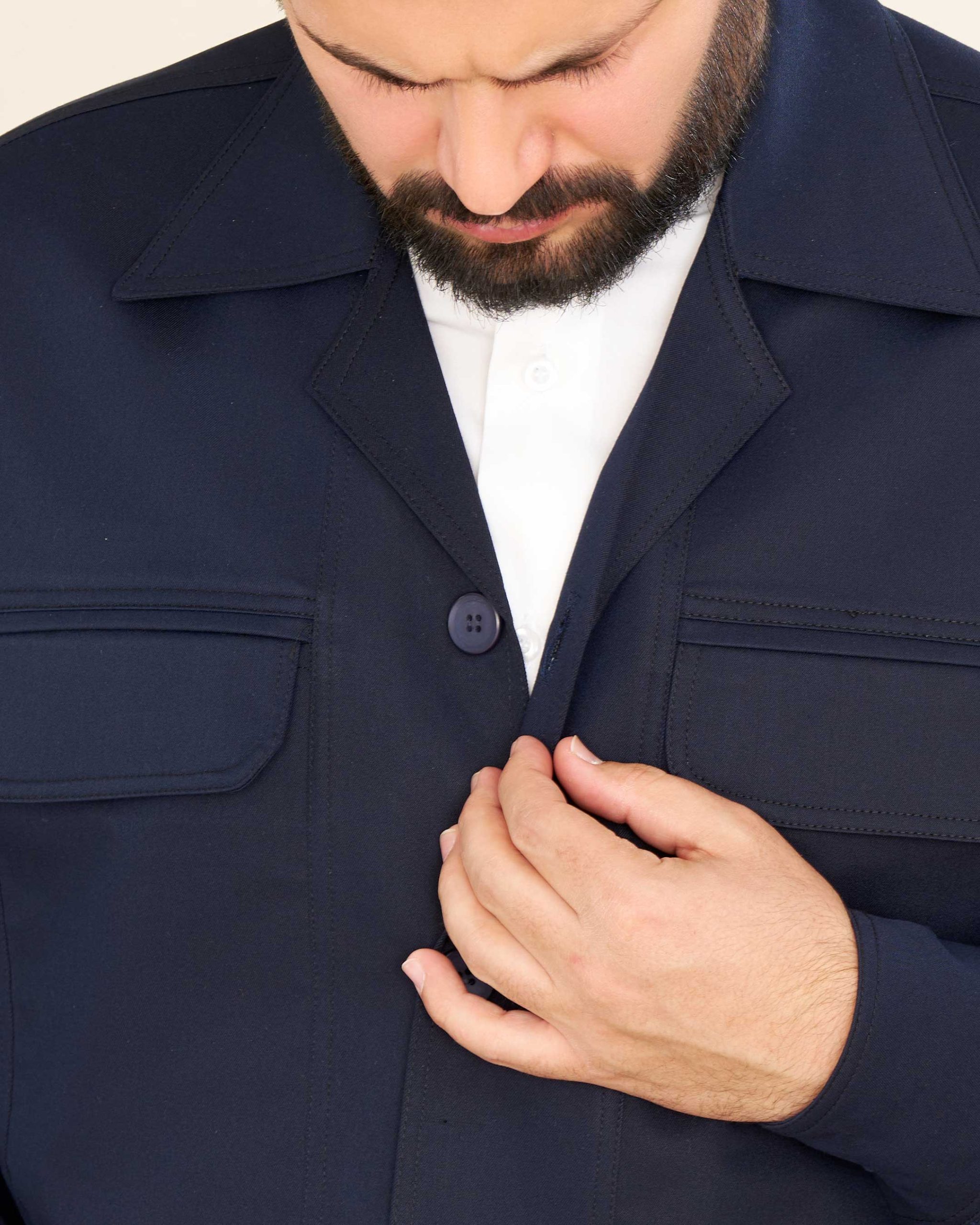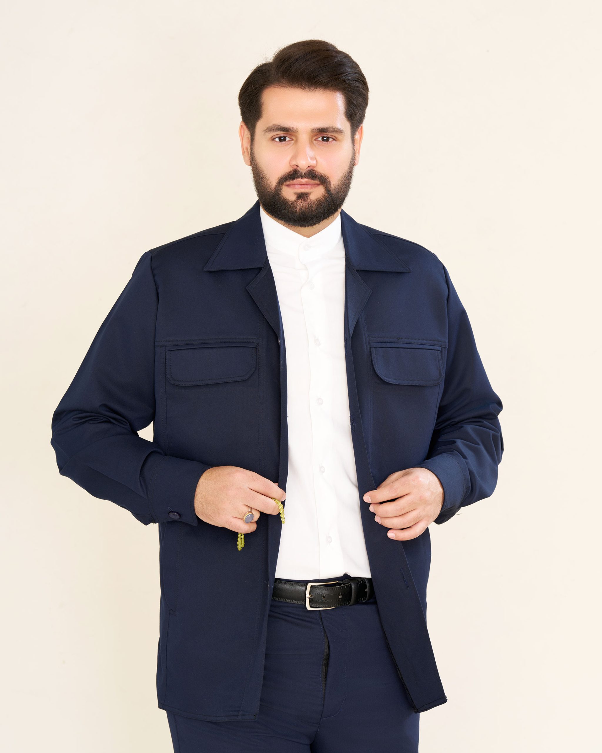 طراحی: چهار جیب بیرونی (دو بالا، دو پایین) – یقه برگردان کلاسیک