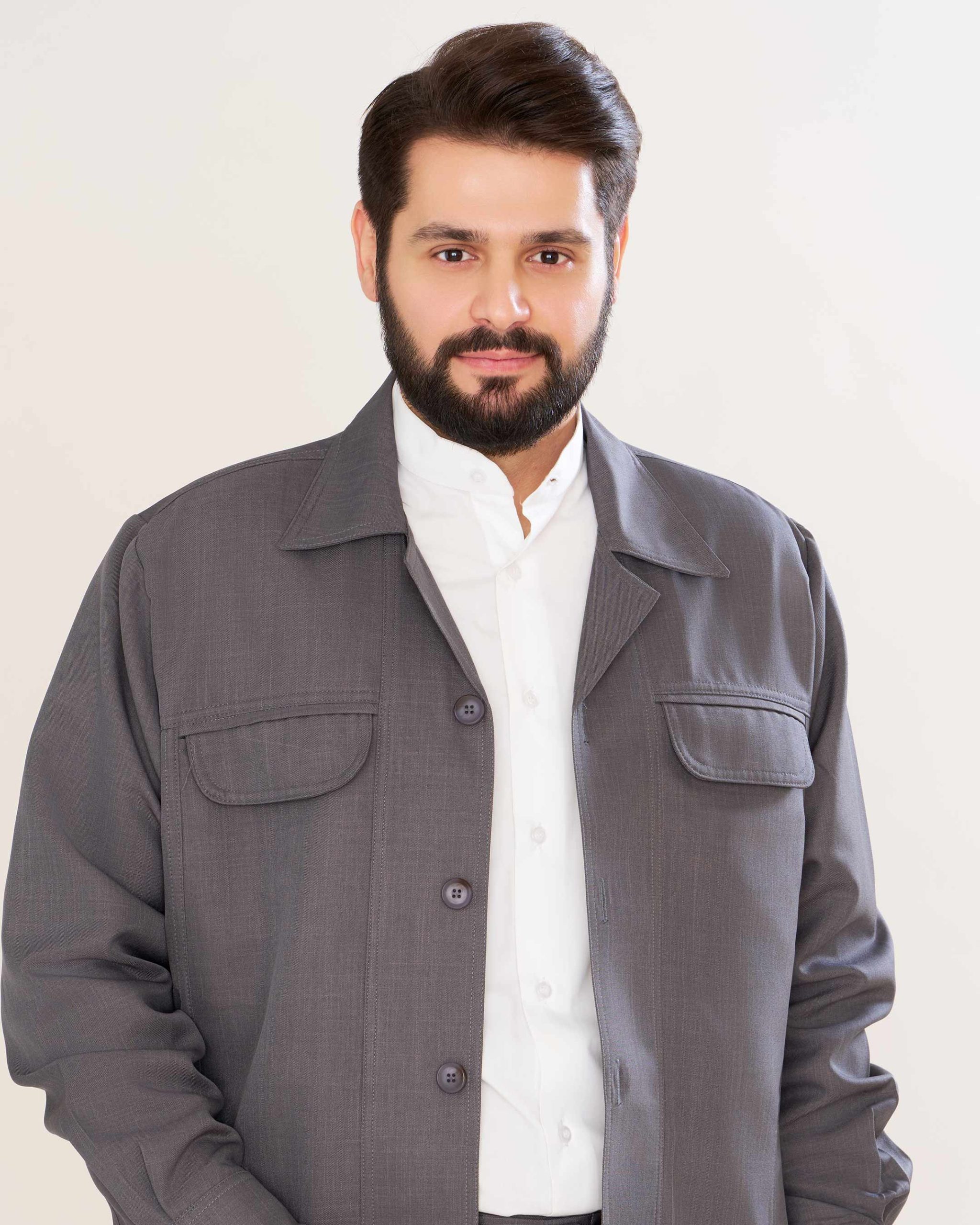 طراحی: چهار جیب بیرونی (دو بالا، دو پایین) – یقه برگردان کلاسیک
