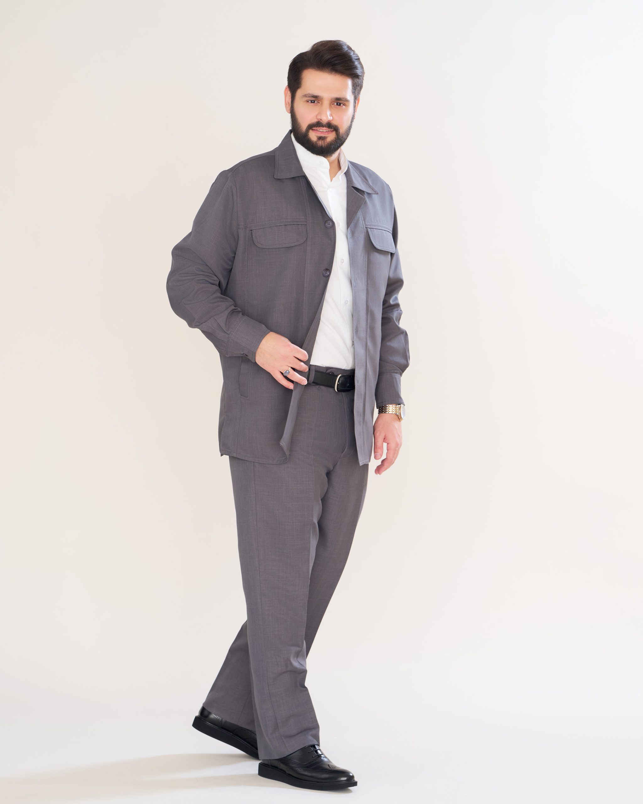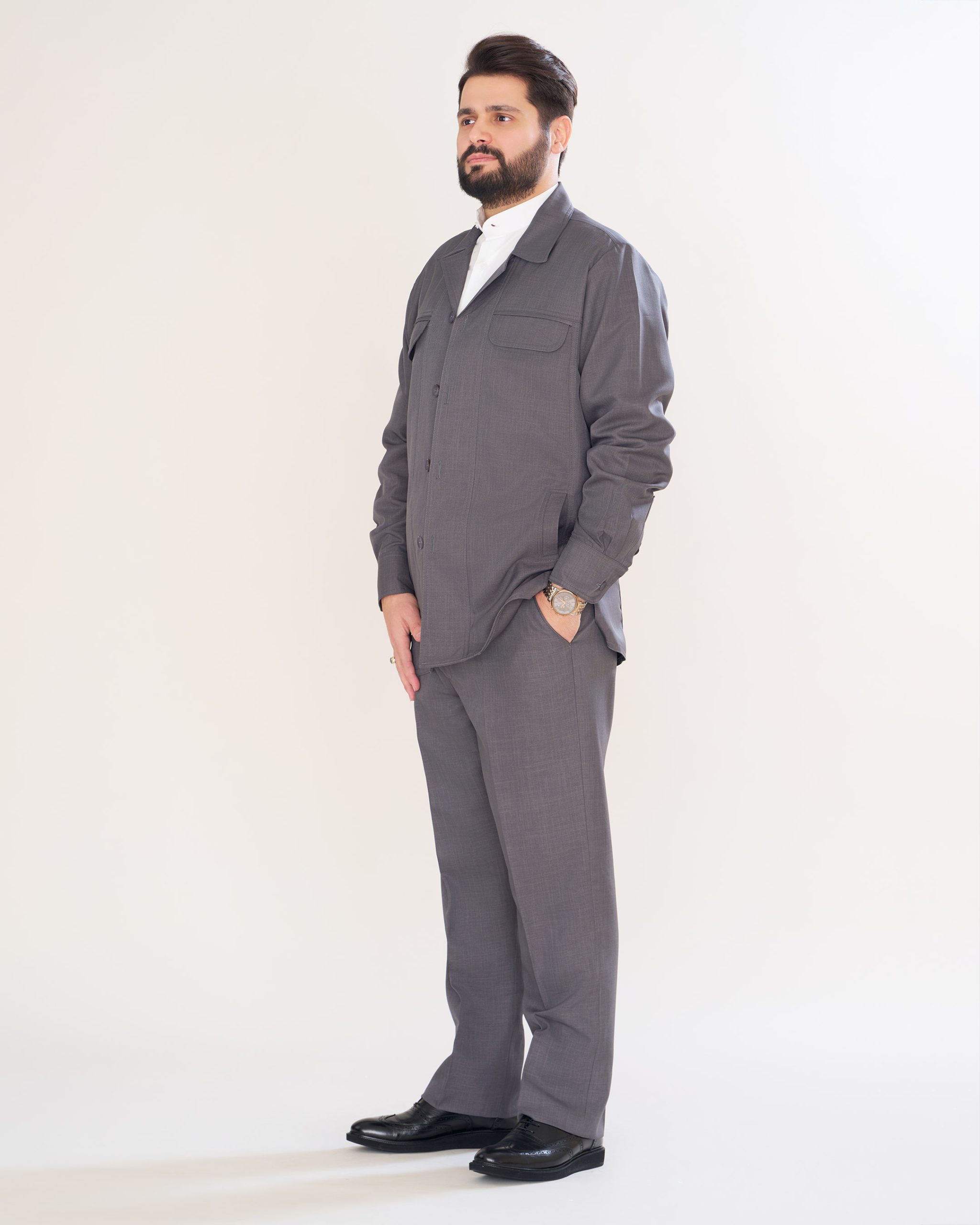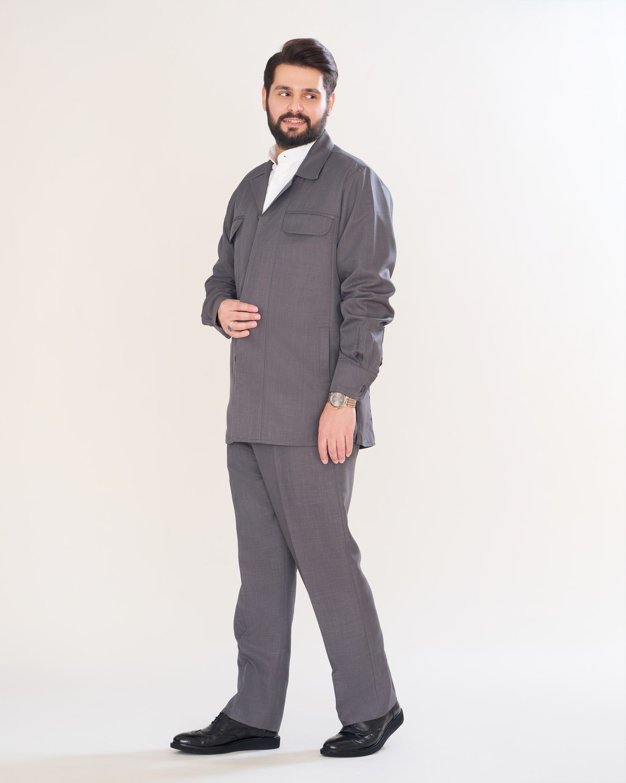 کت و شلوار سافاری مچ دار رنگ طوسی تیره کد KS12065