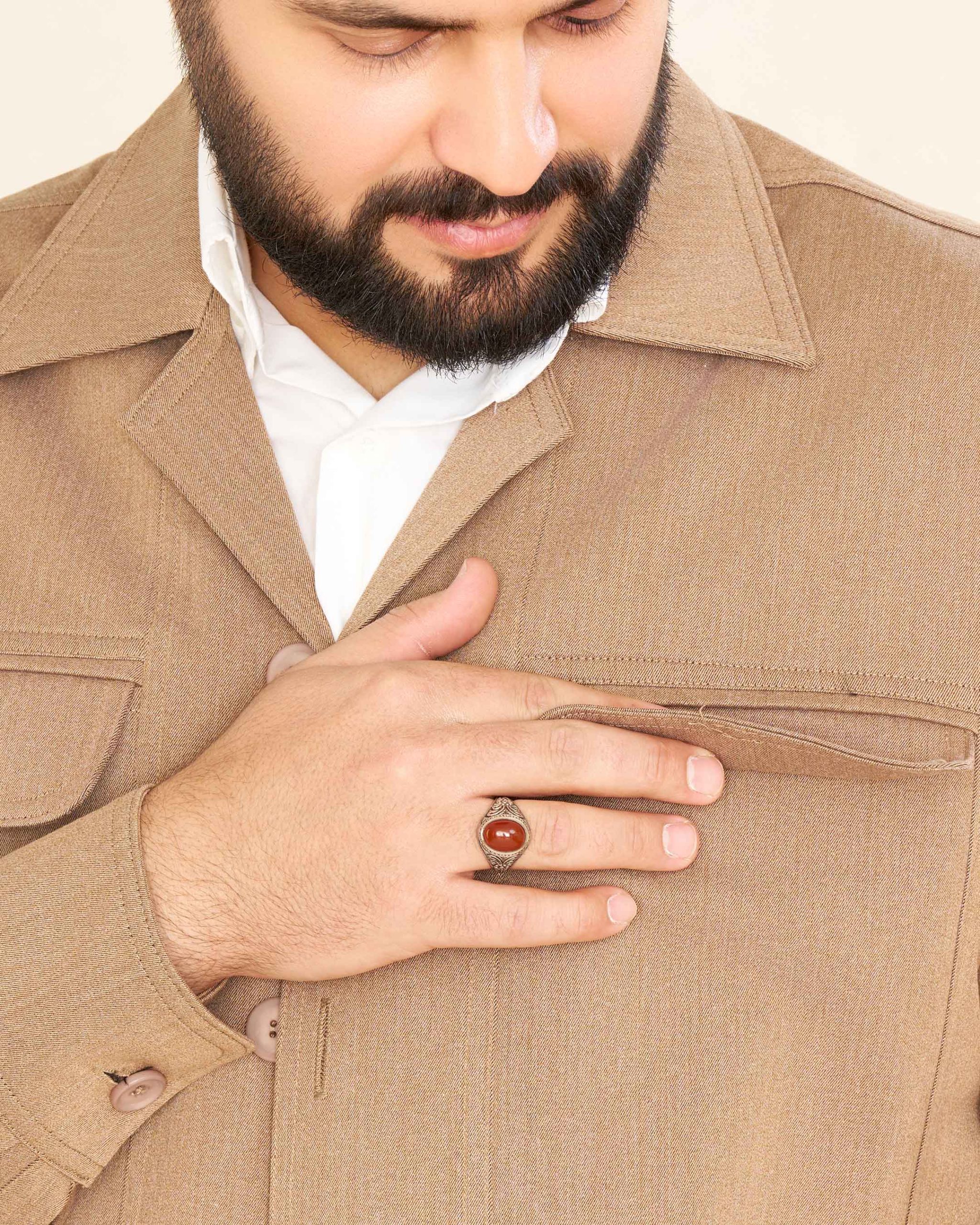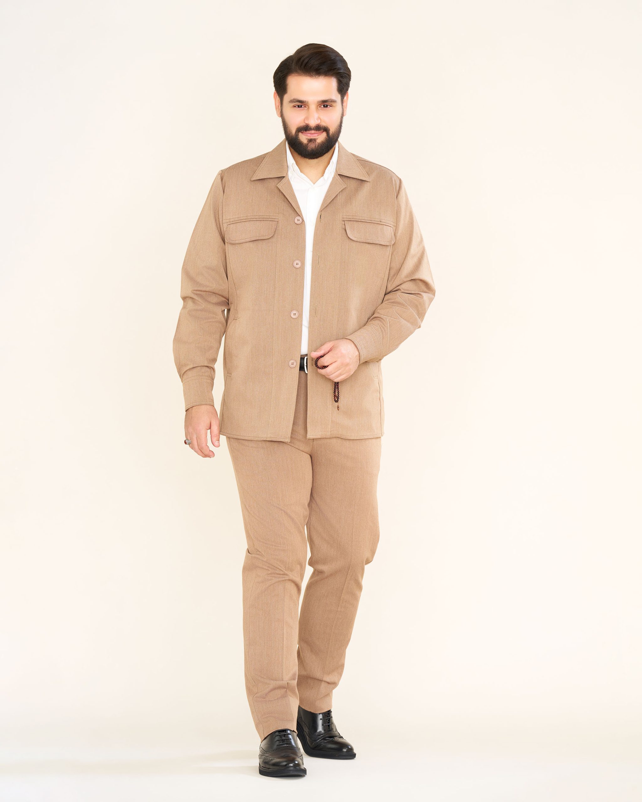 کت و شلوار سافاری مچ دار رنگ نسکافه ای کد KS12071