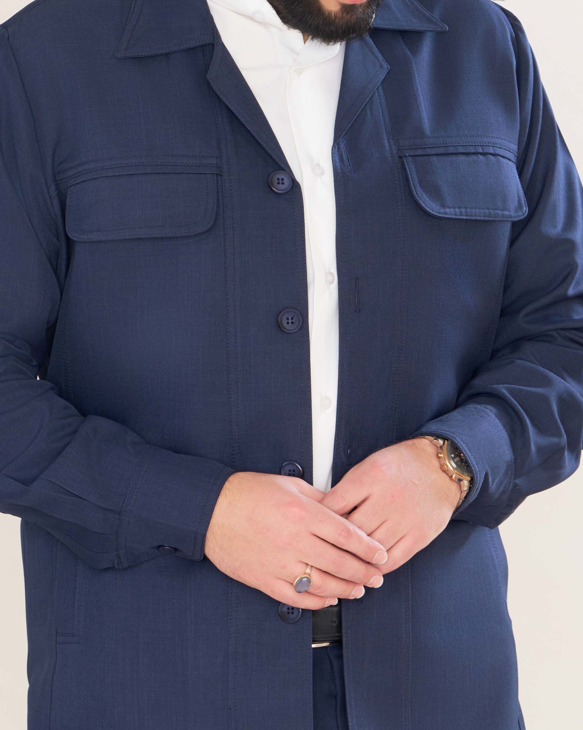 طراحی: چهار جیب بیرونی، یقه برگردان کلاسیک، دوخت ایستاده