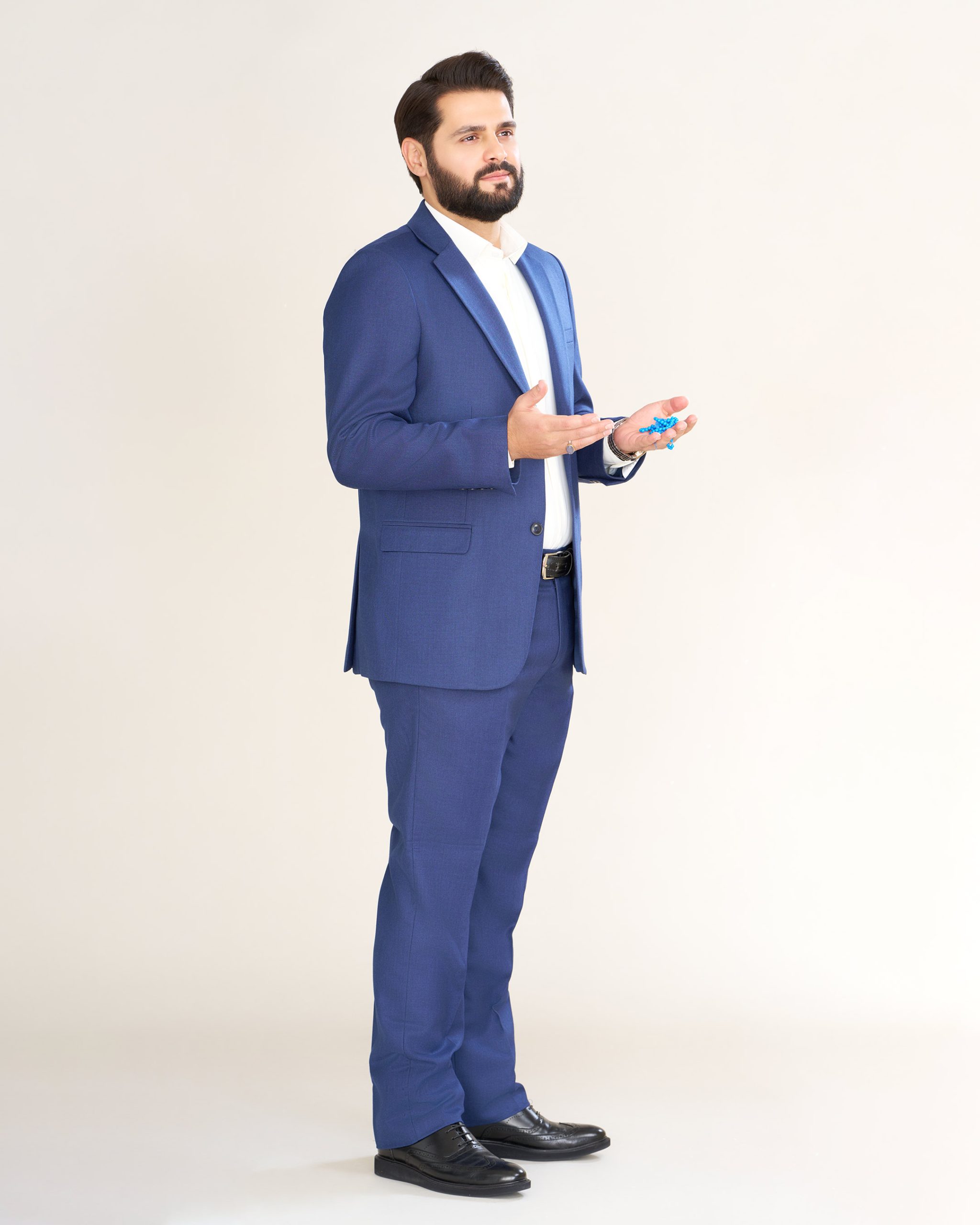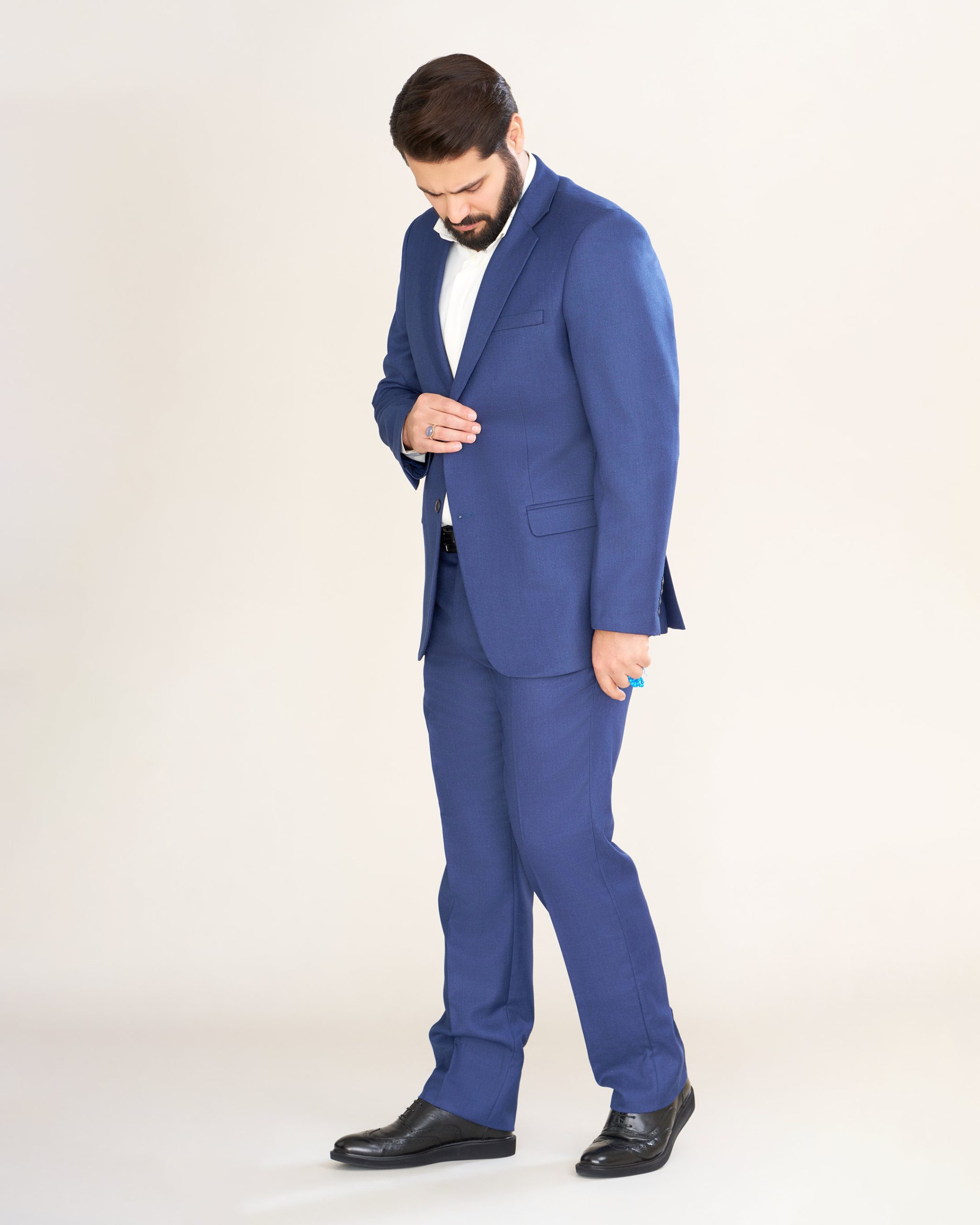کت و شلوار کلاسیک دو چاک آبی کاربنی KS21075