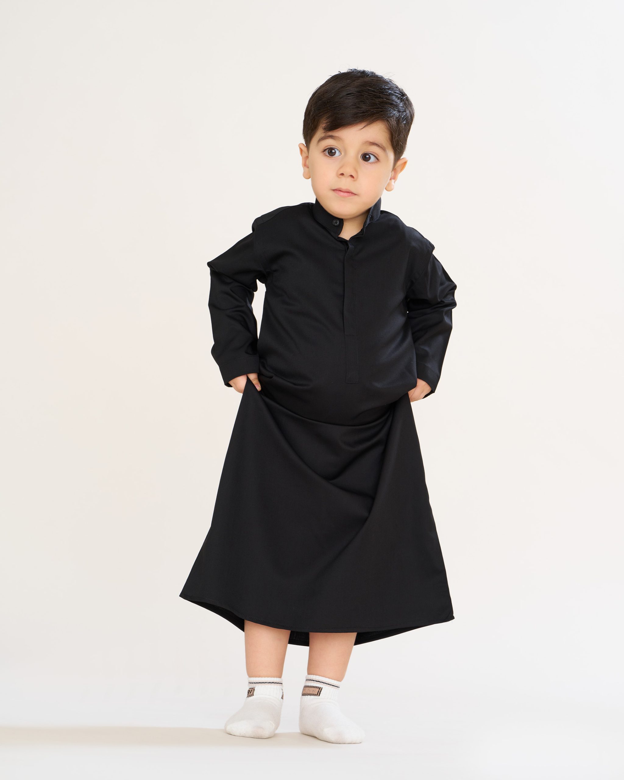دشداشه عربی مشکی یقه آخوندی بچه گانه کد PB12058