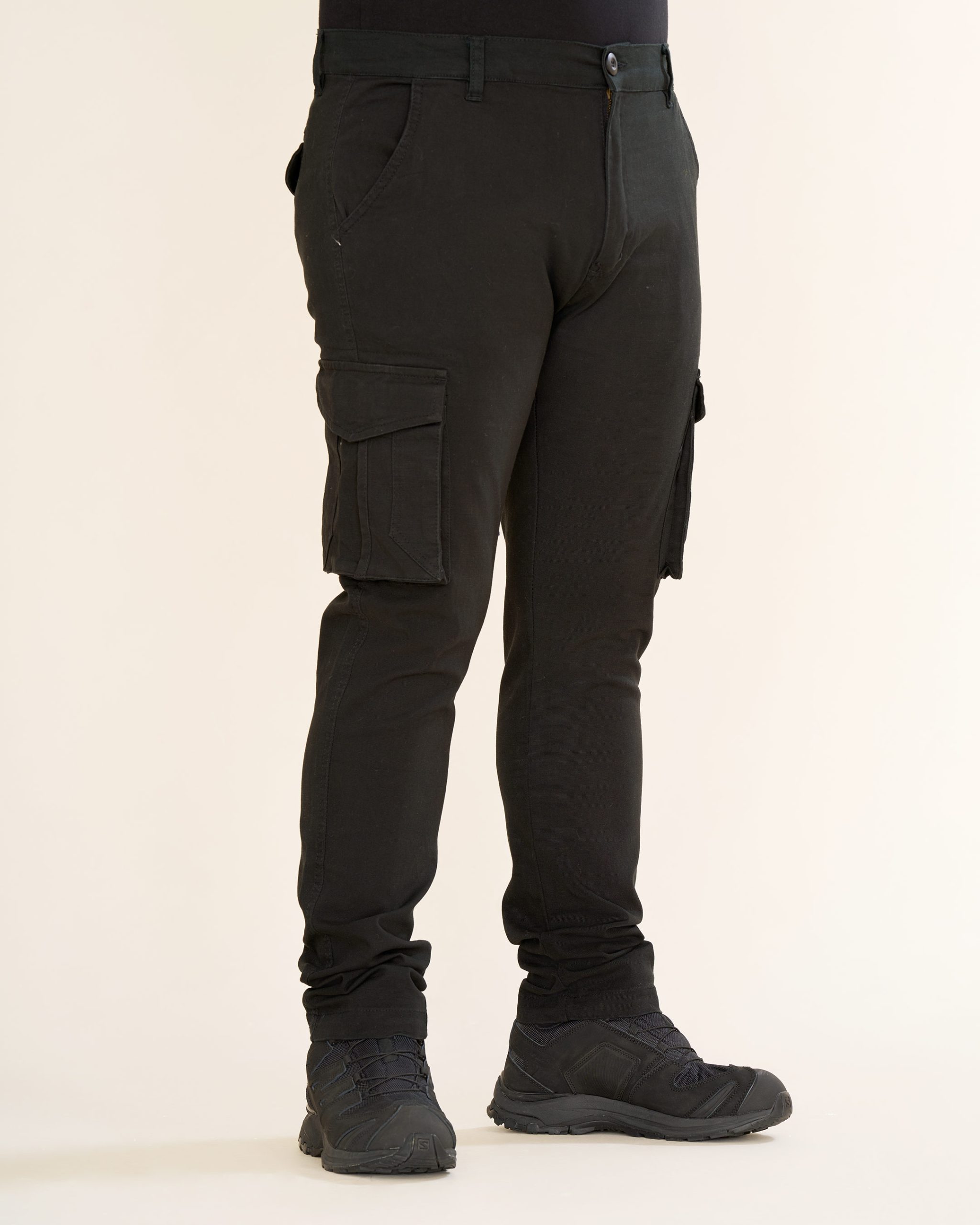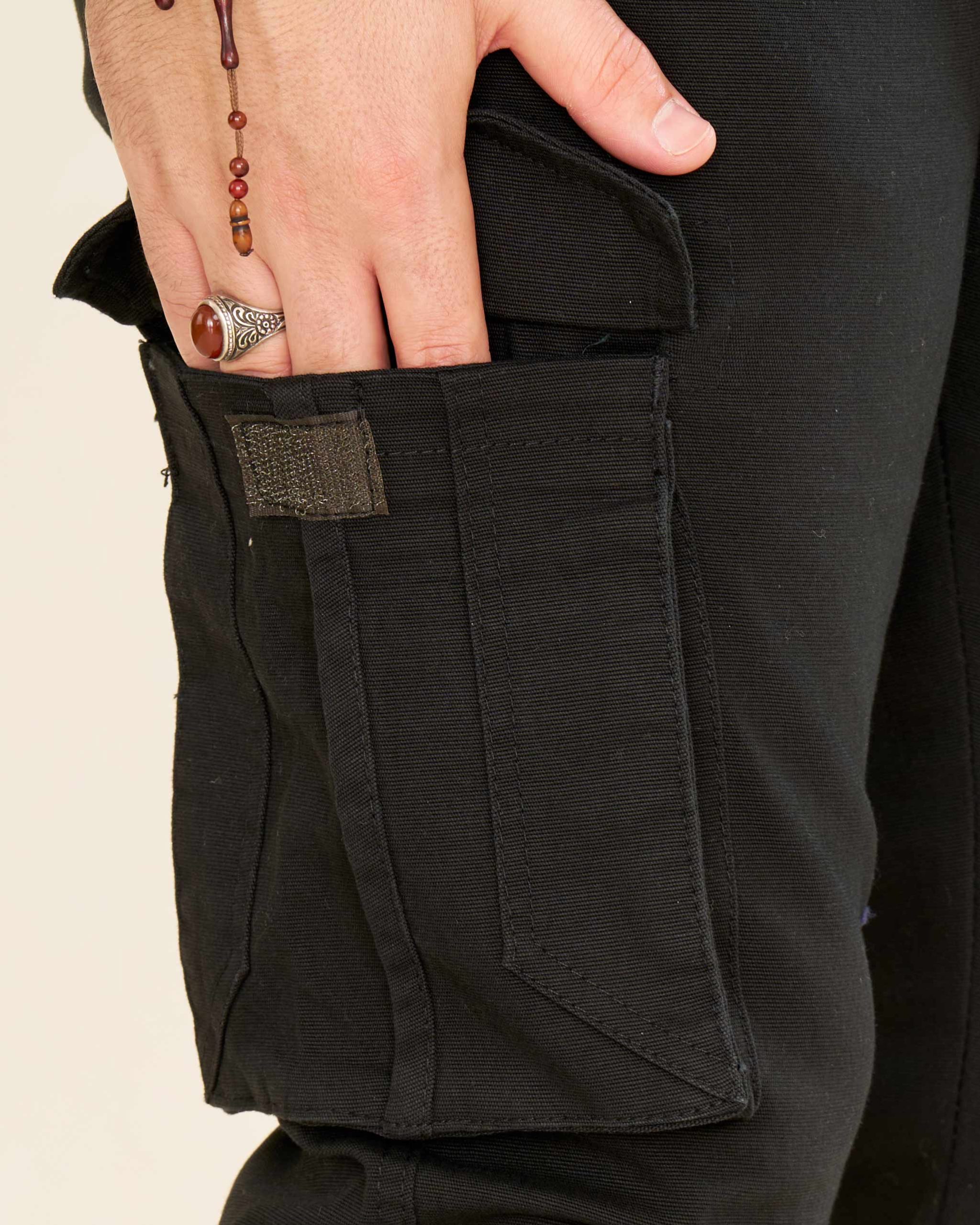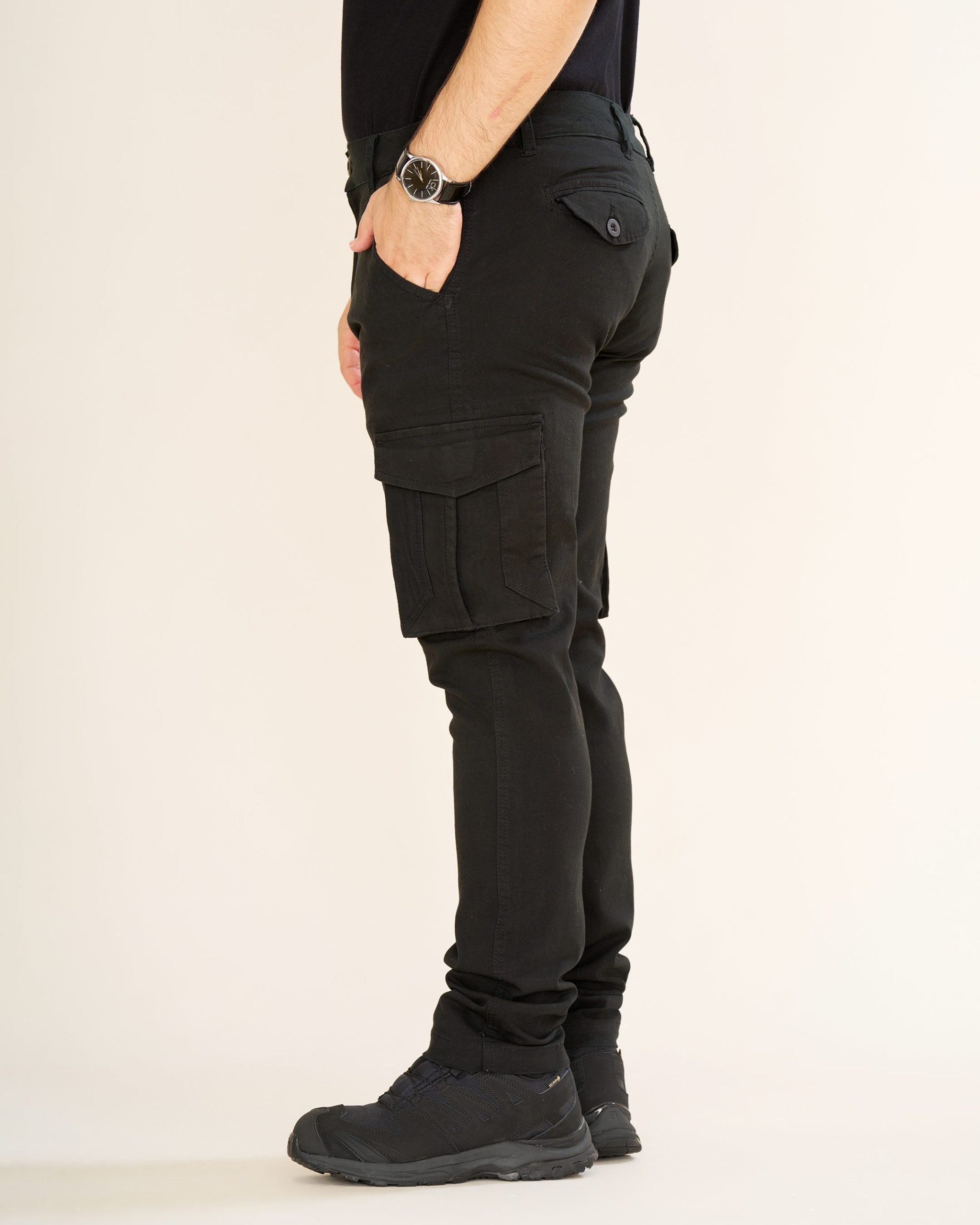 این مدل با پارچه کتان کشی تولید شده که هم مقاومت و دوام بالایی دارد و هم انعطاف و راحتی بیشتری هنگام حرکت فراهم میکند. رنگ مشکی این شلوار باعث شده هم در استایل روزمره و شهری جذاب باشد و هم برای موقعیتهای اسپرت و نیمهرسمی انتخابی عالی محسوب شود.