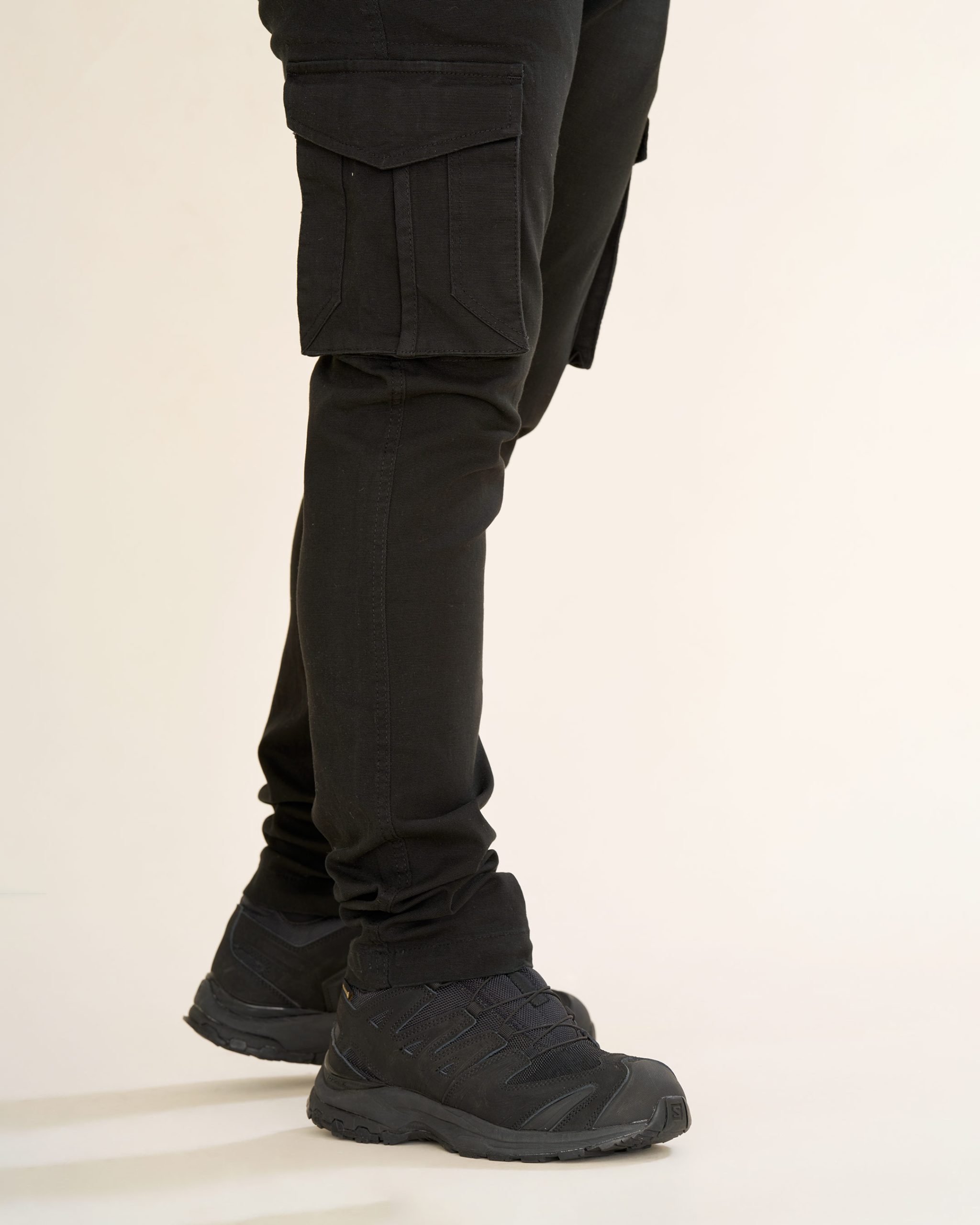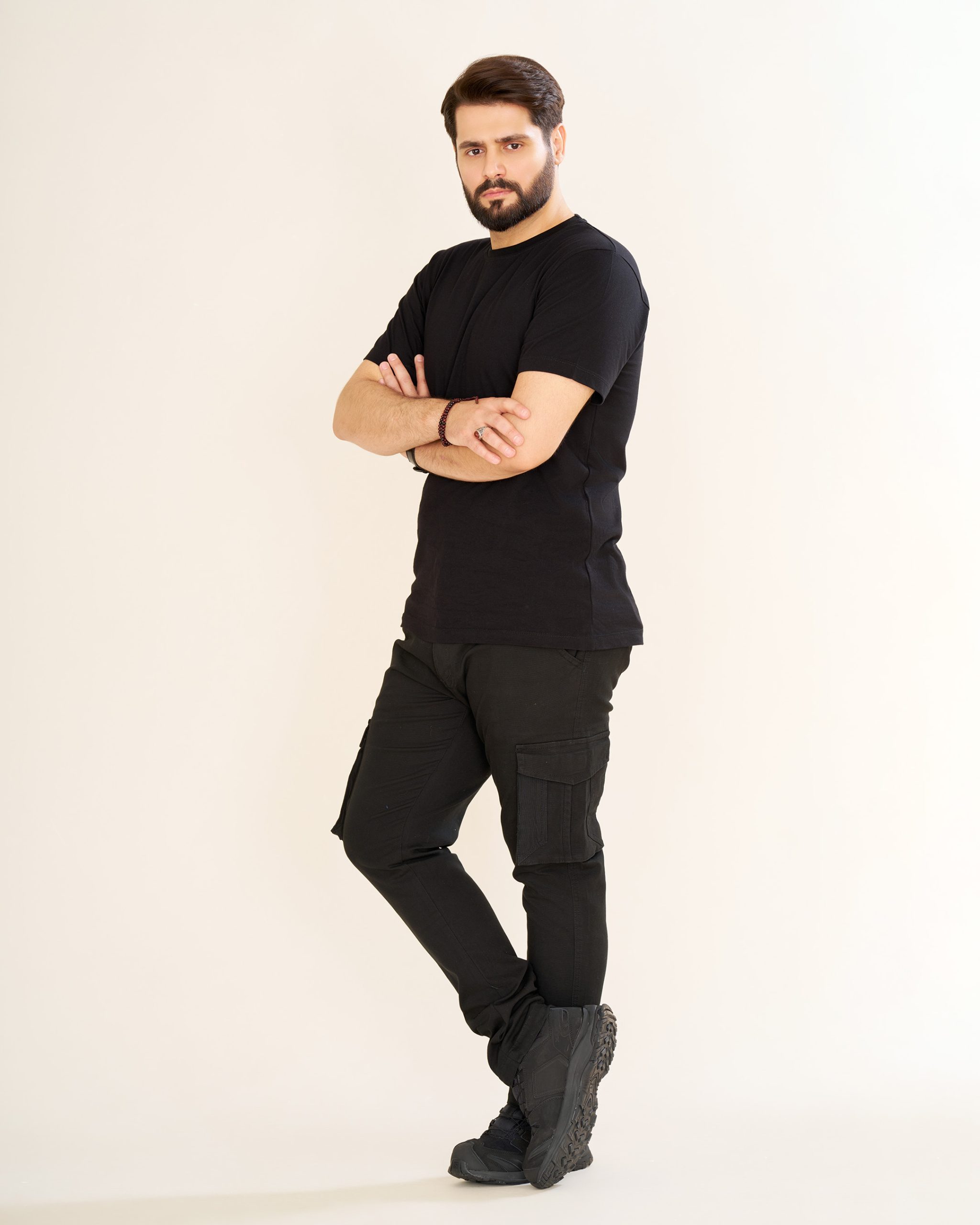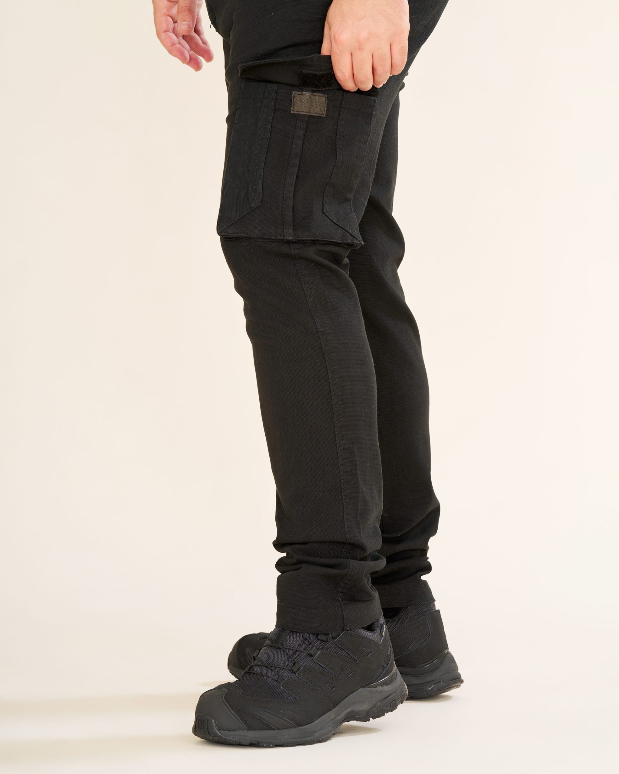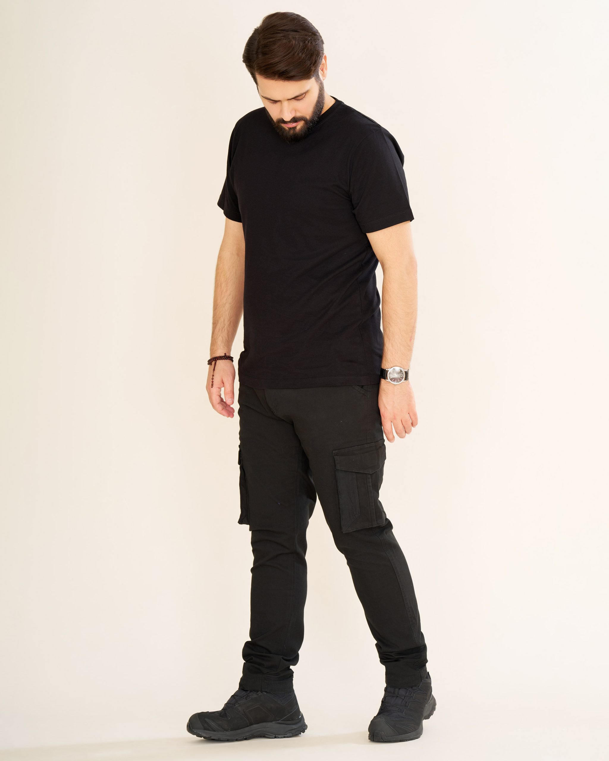 این مدل با پارچه کتان کشی تولید شده که هم مقاومت و دوام بالایی دارد و هم انعطاف و راحتی بیشتری هنگام حرکت فراهم میکند. رنگ مشکی این شلوار باعث شده هم در استایل روزمره و شهری جذاب باشد و هم برای موقعیتهای اسپرت و نیمهرسمی انتخابی عالی محسوب شود.