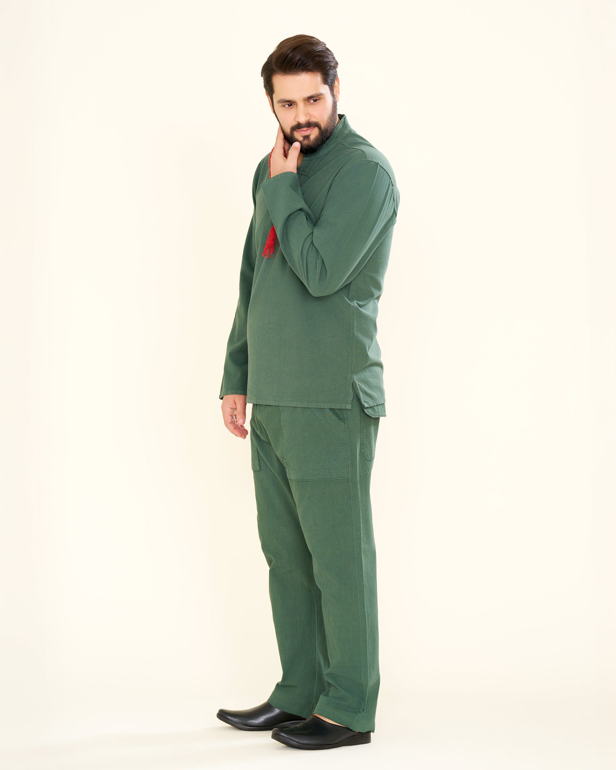 شلوار الیافی ساده رنگ یشمی SM11006