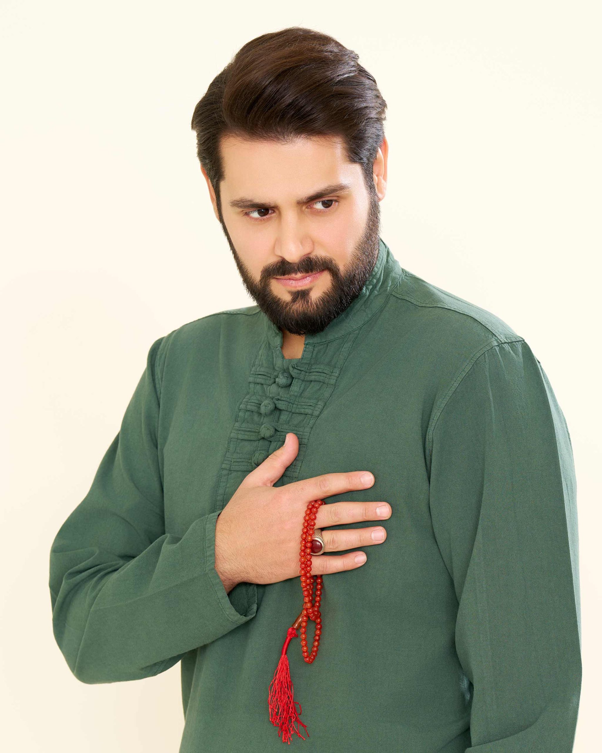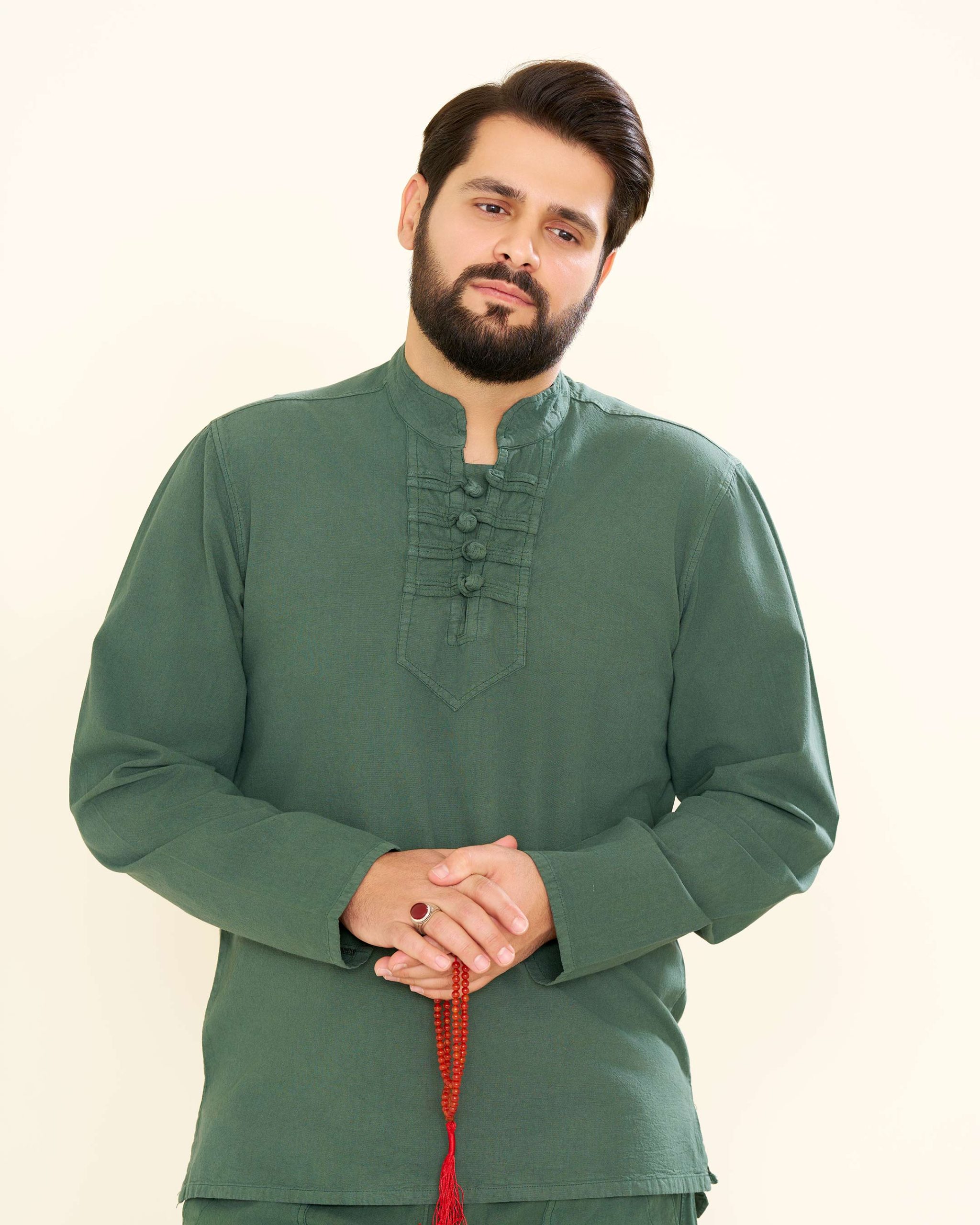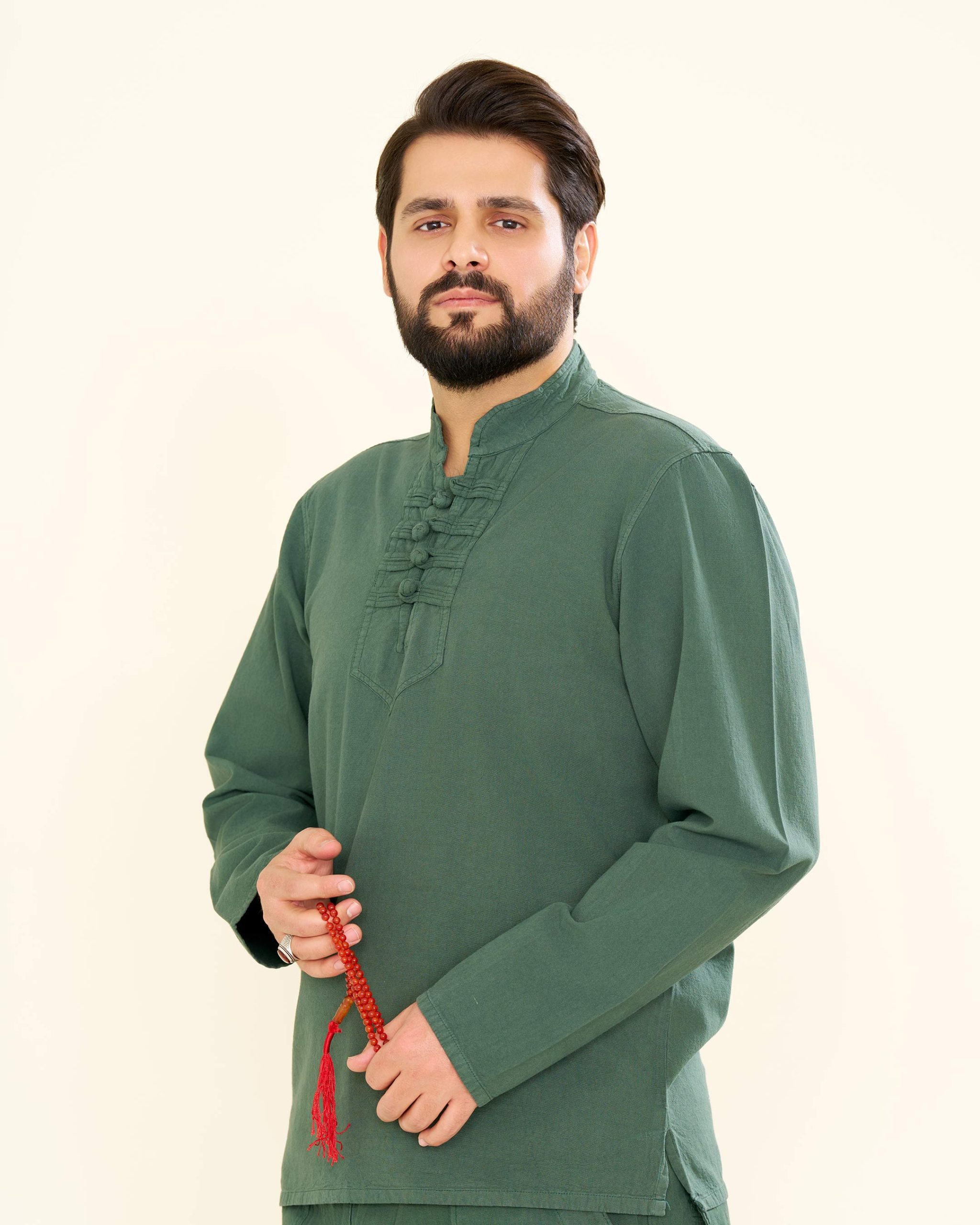 پیراهن الیافی چهار گره رنگ سبز مغز پسته ای PA11017