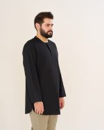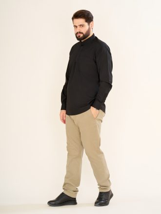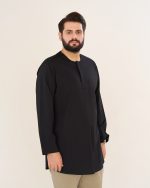 پیراهن پاکستانی مشکی بدون یقه زیپی مردانه PM22007