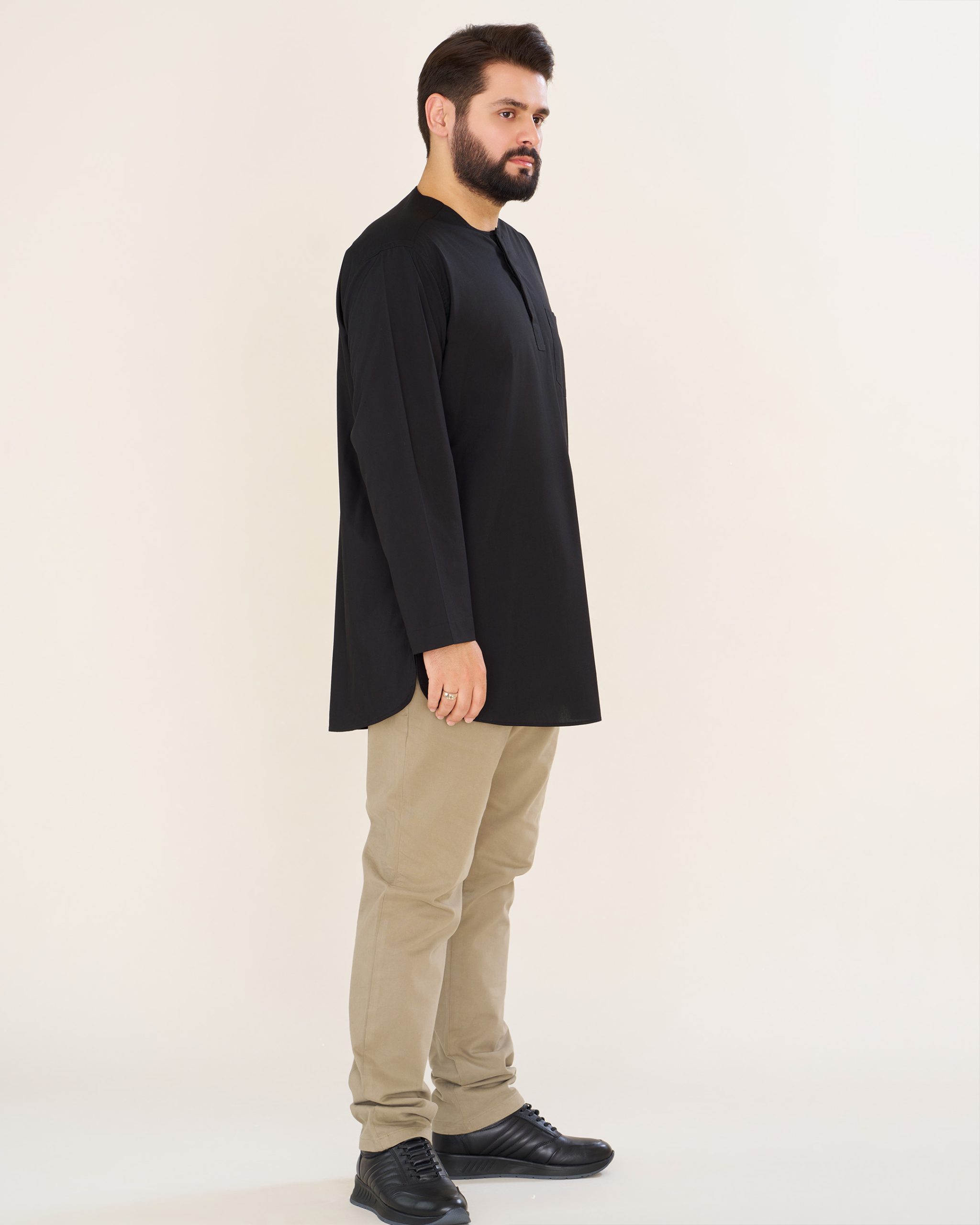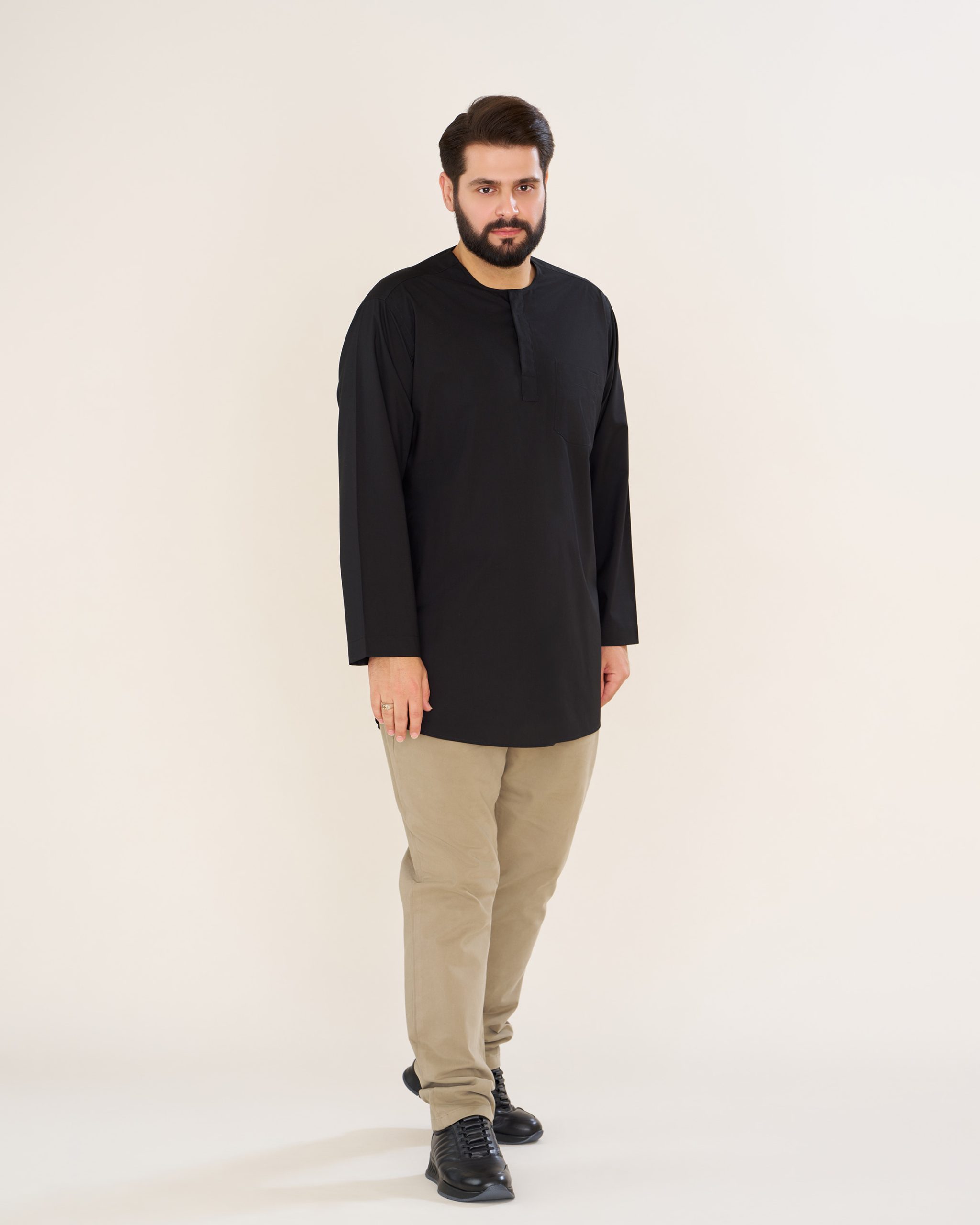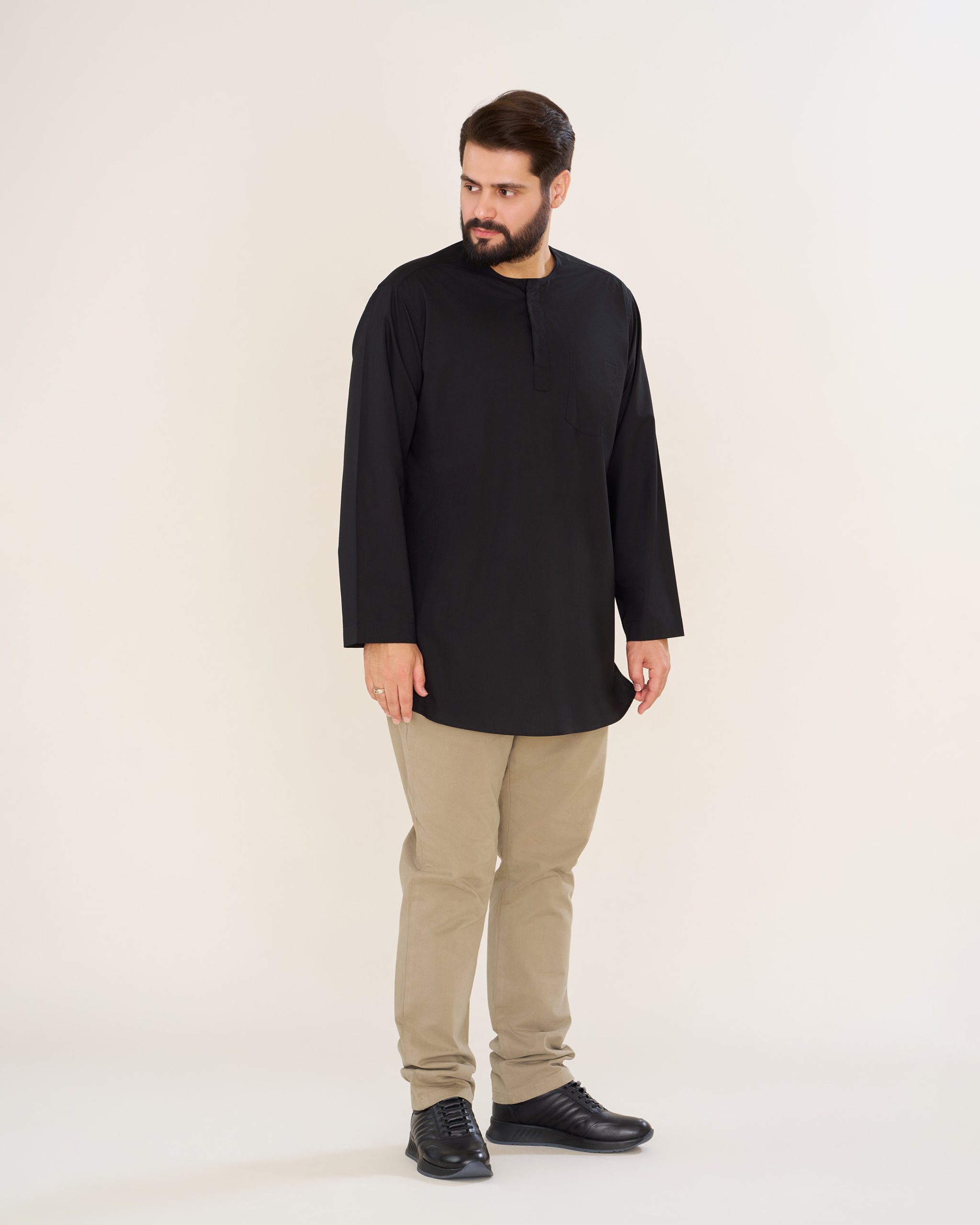پیراهن پاکستانی مشکی یقه آخوندی مردانه PM22001