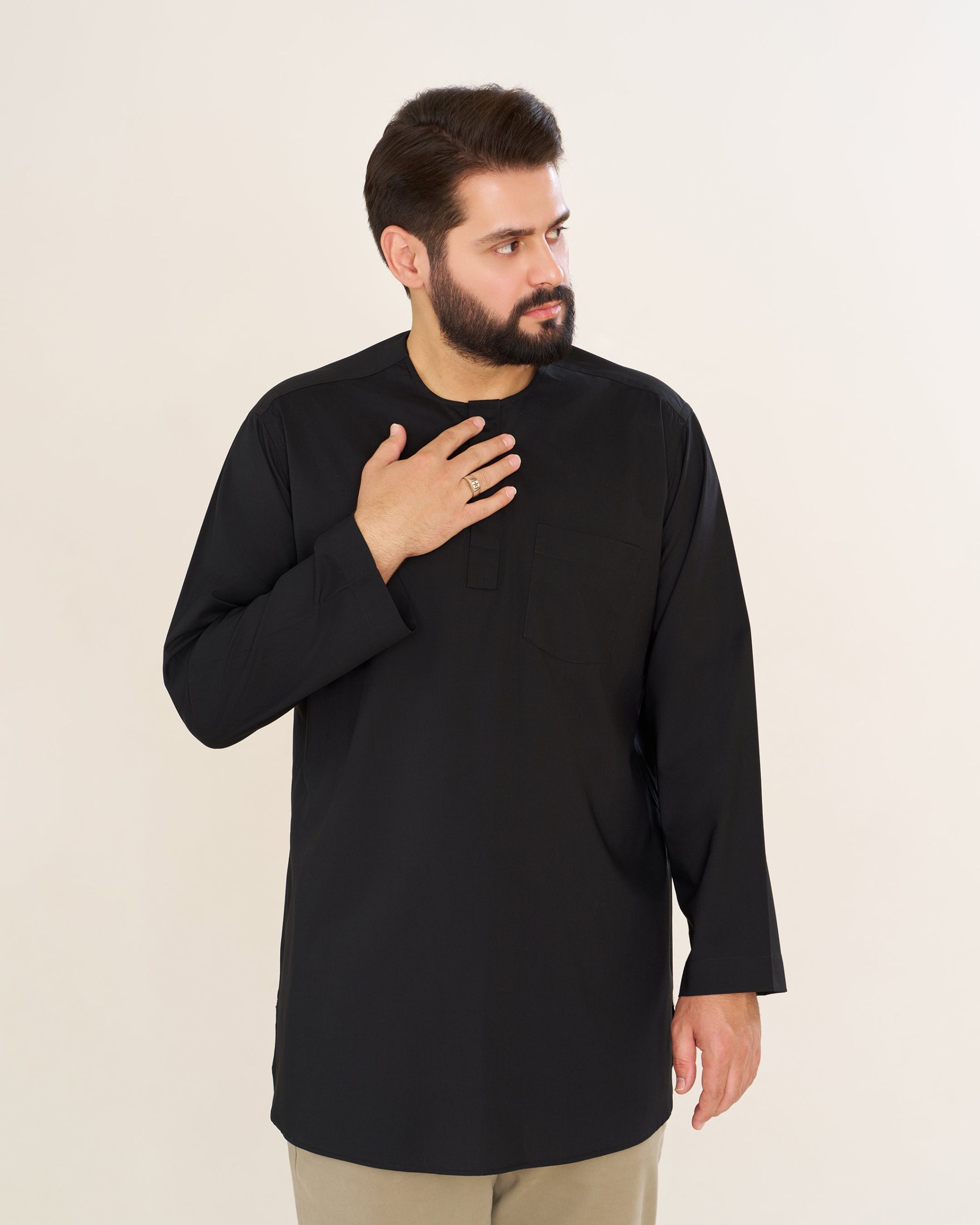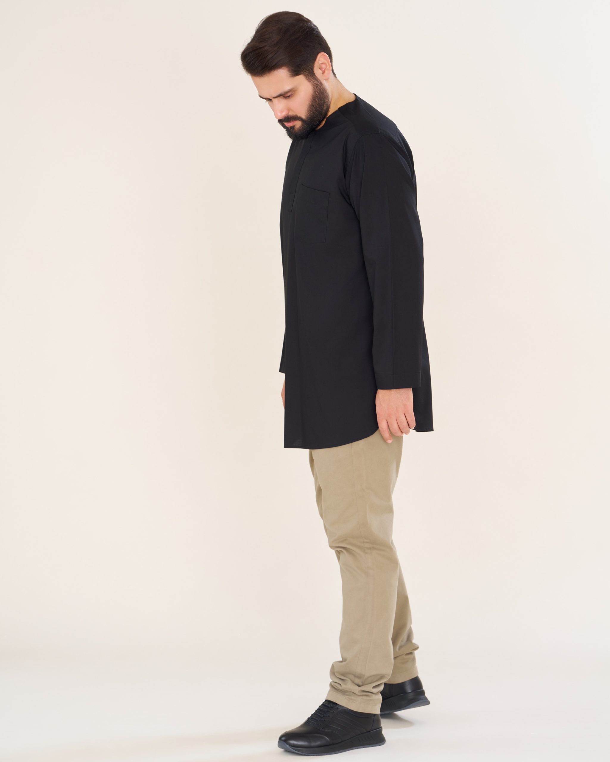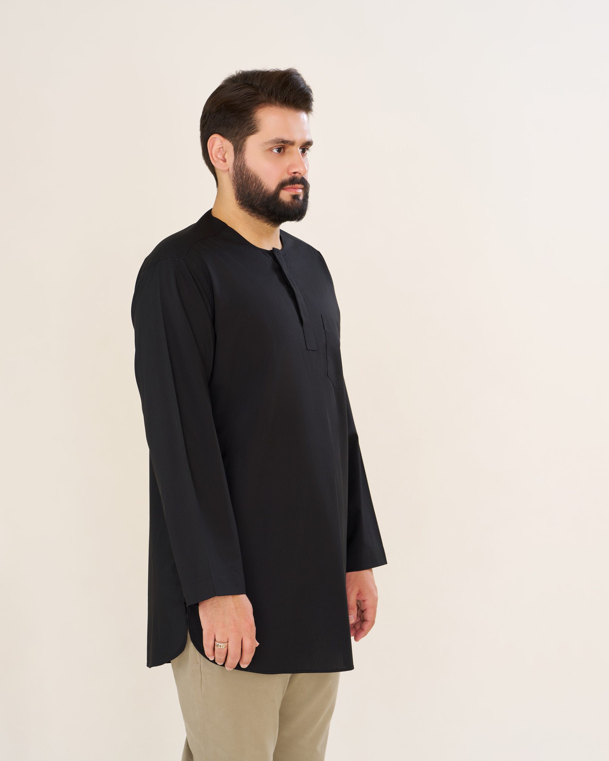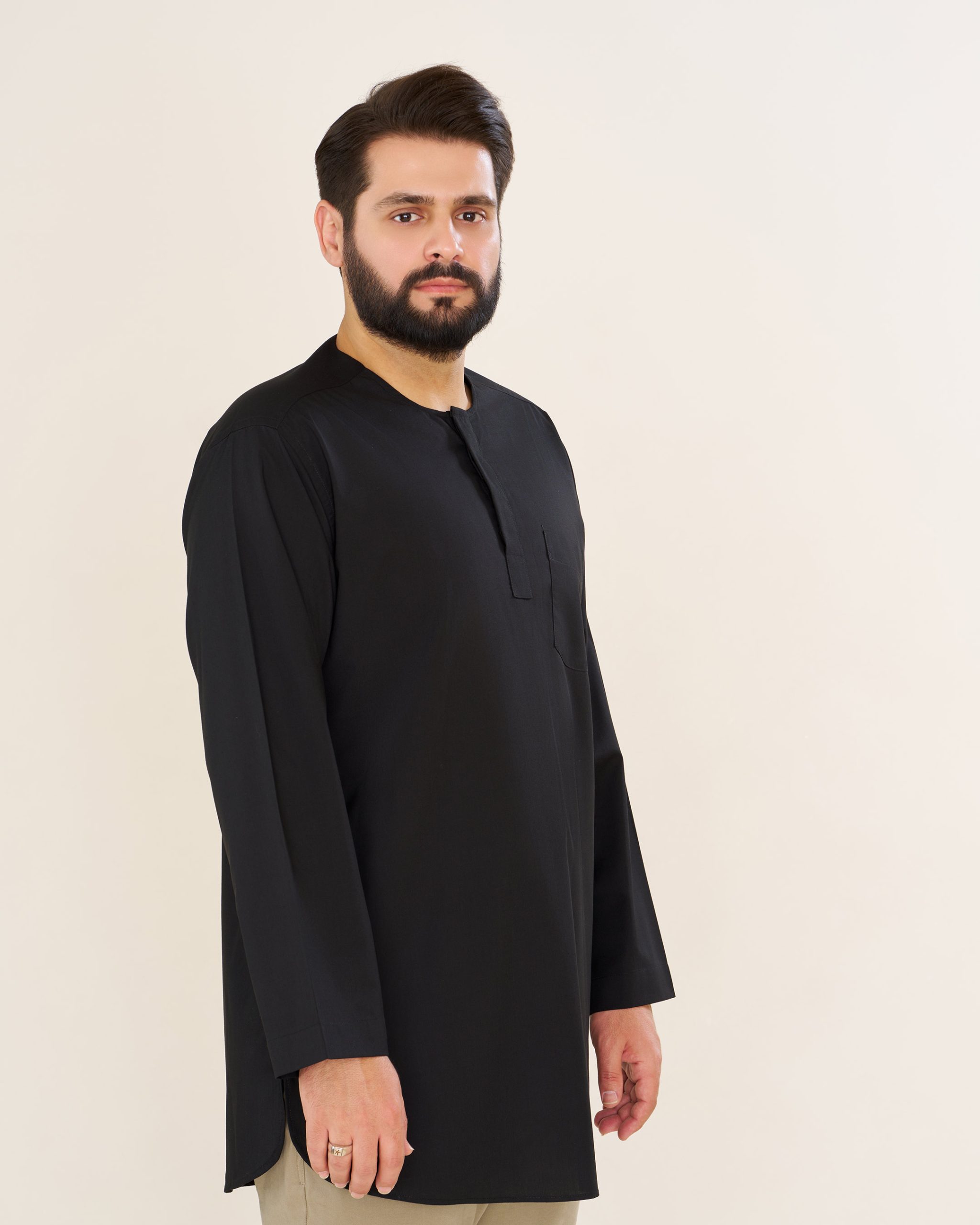 پیراهن پاکستانی مشکی یقه آخوندی مردانه PM22001