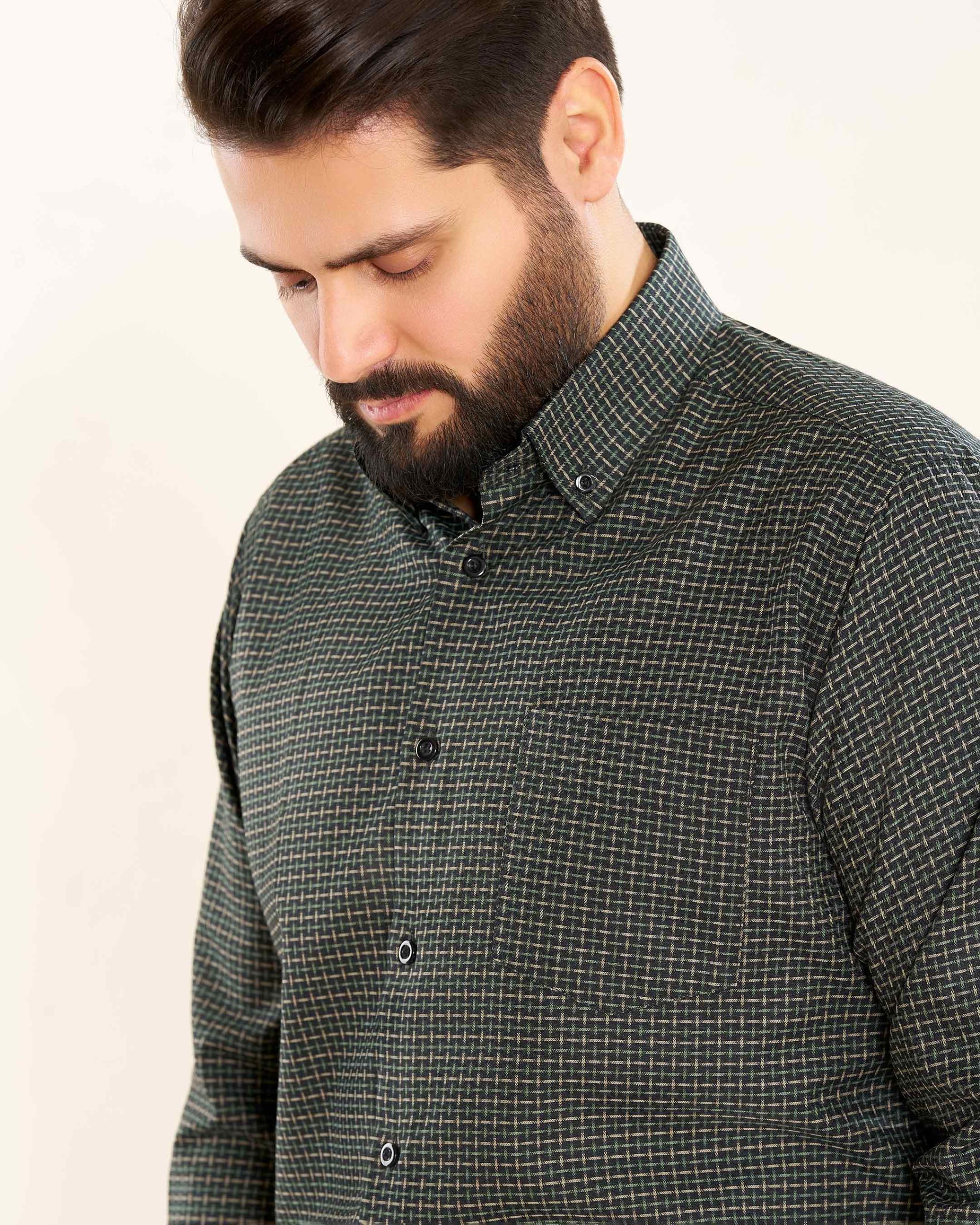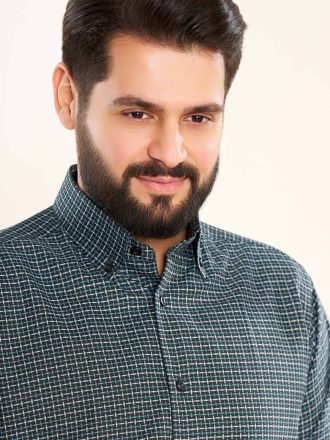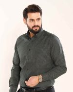 پیراهن تترون یقه انگلیسی کلاسیک زمینه تیره با خطوط سبز و سفید کد PC13041