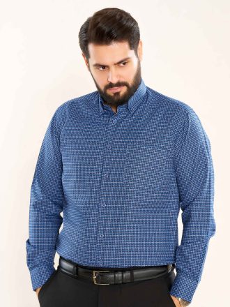 پیراهن تترون یقه انگلیسی کلاسیک زمینه تیره با خطوط سرمه ای و سفید کد PC13043