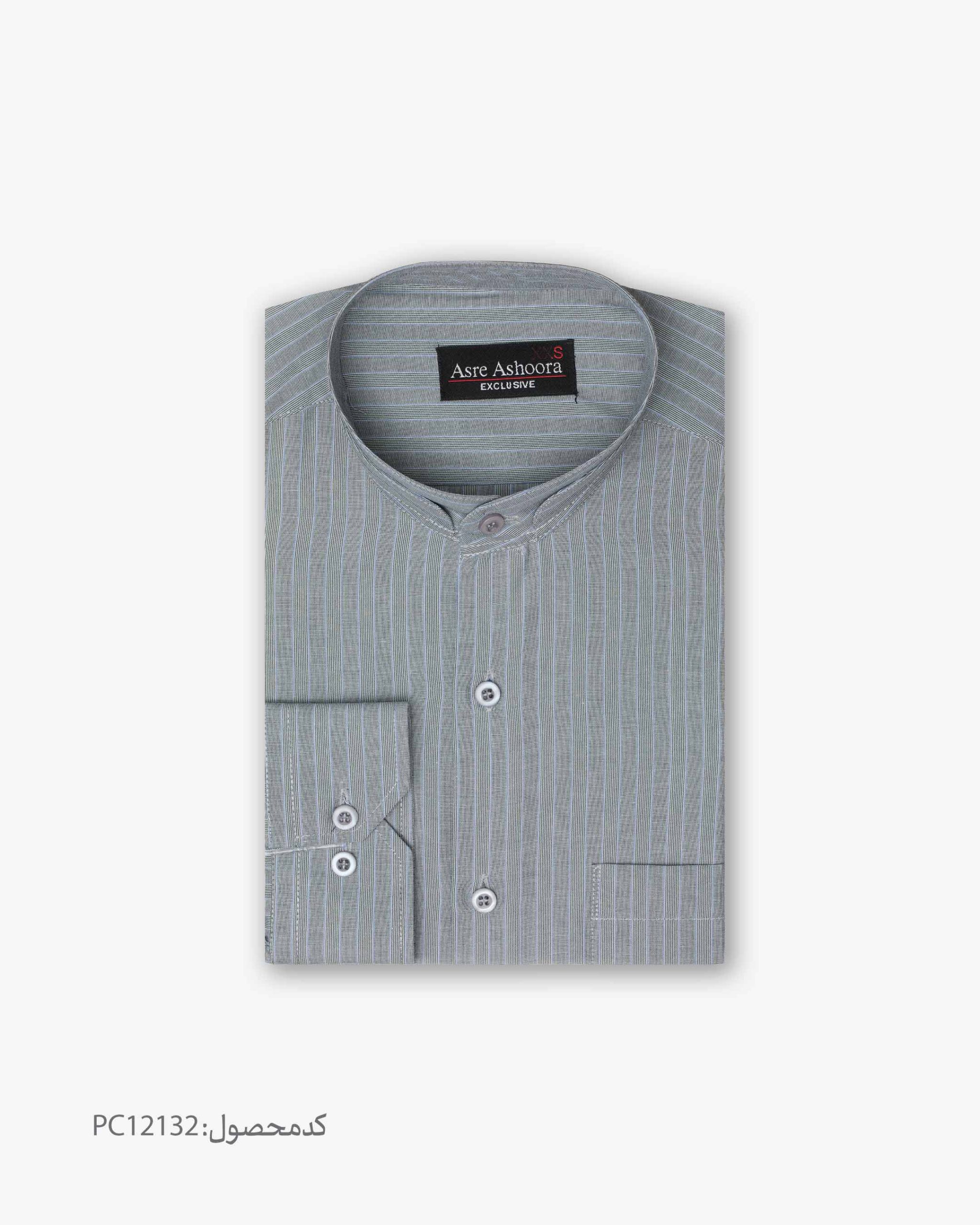 پیراهن تترون یقه دیپلمات کلاسیک راه راه زمینه طوسی کد PC12132