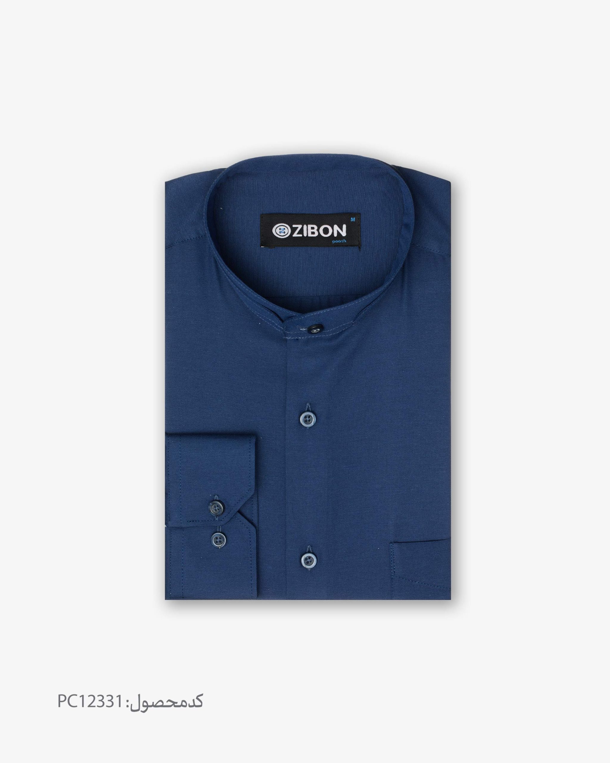 پیراهن تترون یقه دیپلمات کلاسیک ساده زمینه سرمه ای کد PC12331