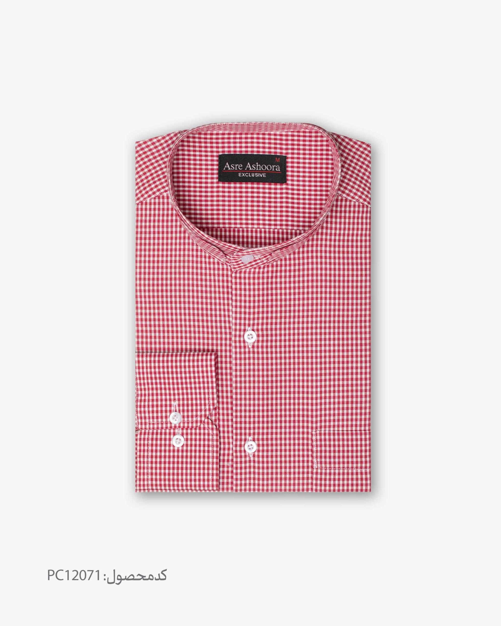 پیراهن تترون یقه دیپلمات کلاسیک چهارخانه ریز زمینه قرمز کد PC12071