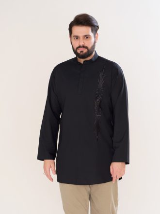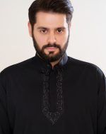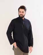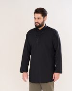 پیراهن پاکستانی مشکی بدون یقه زیپی مردانه PM22007