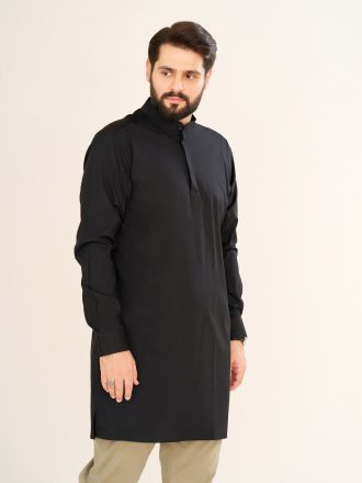 پیراهن پاکستانی مشکی یقه آخوندی مردانه PM22001