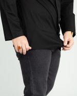 پیراهن هادی مشکی بدون یقه دکمه مخفی آستین بلند مردانه PM21004