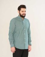 پیراهن یقه انگلیسی پارچه پنبه راه راه سفید و سبز کد PS21166