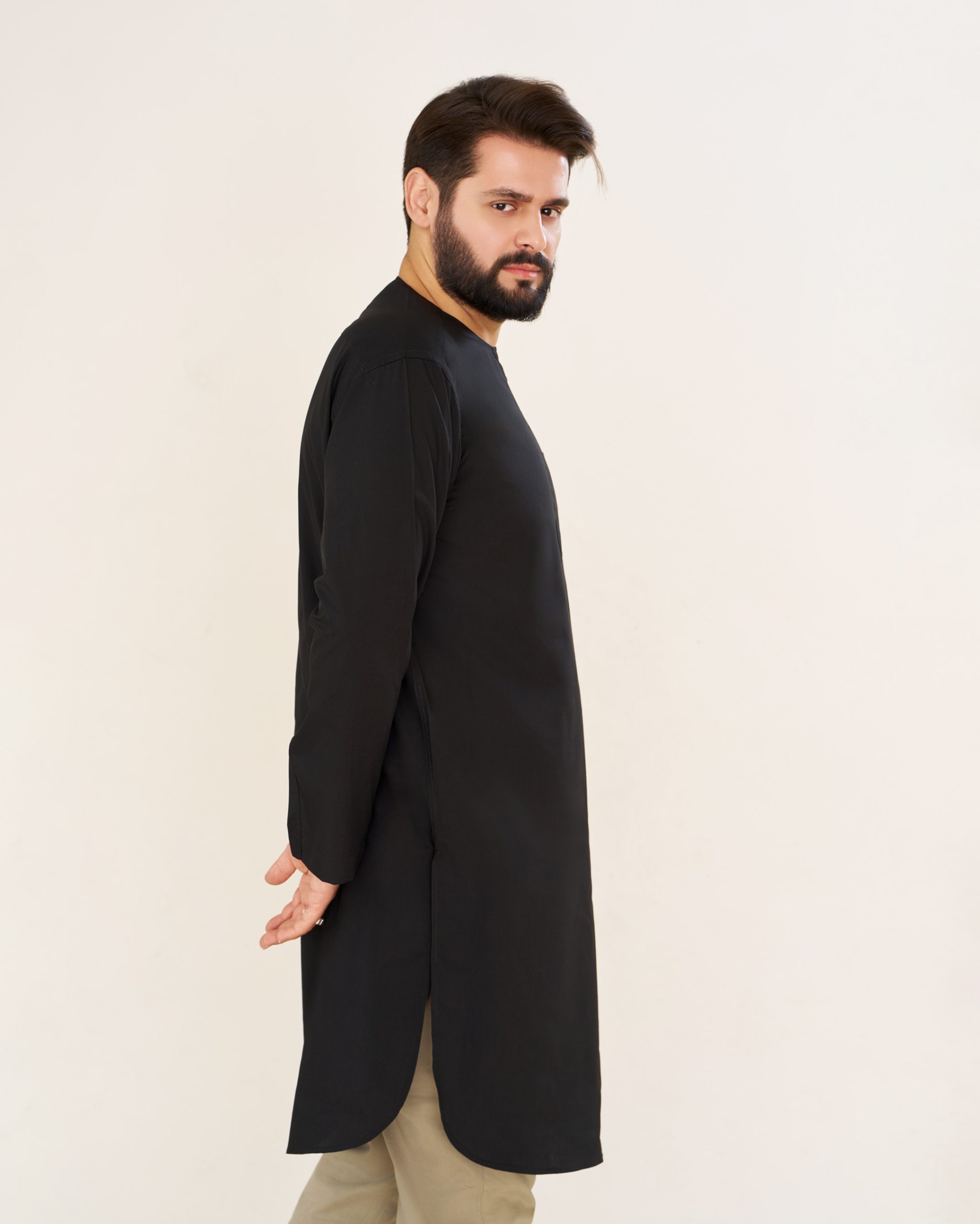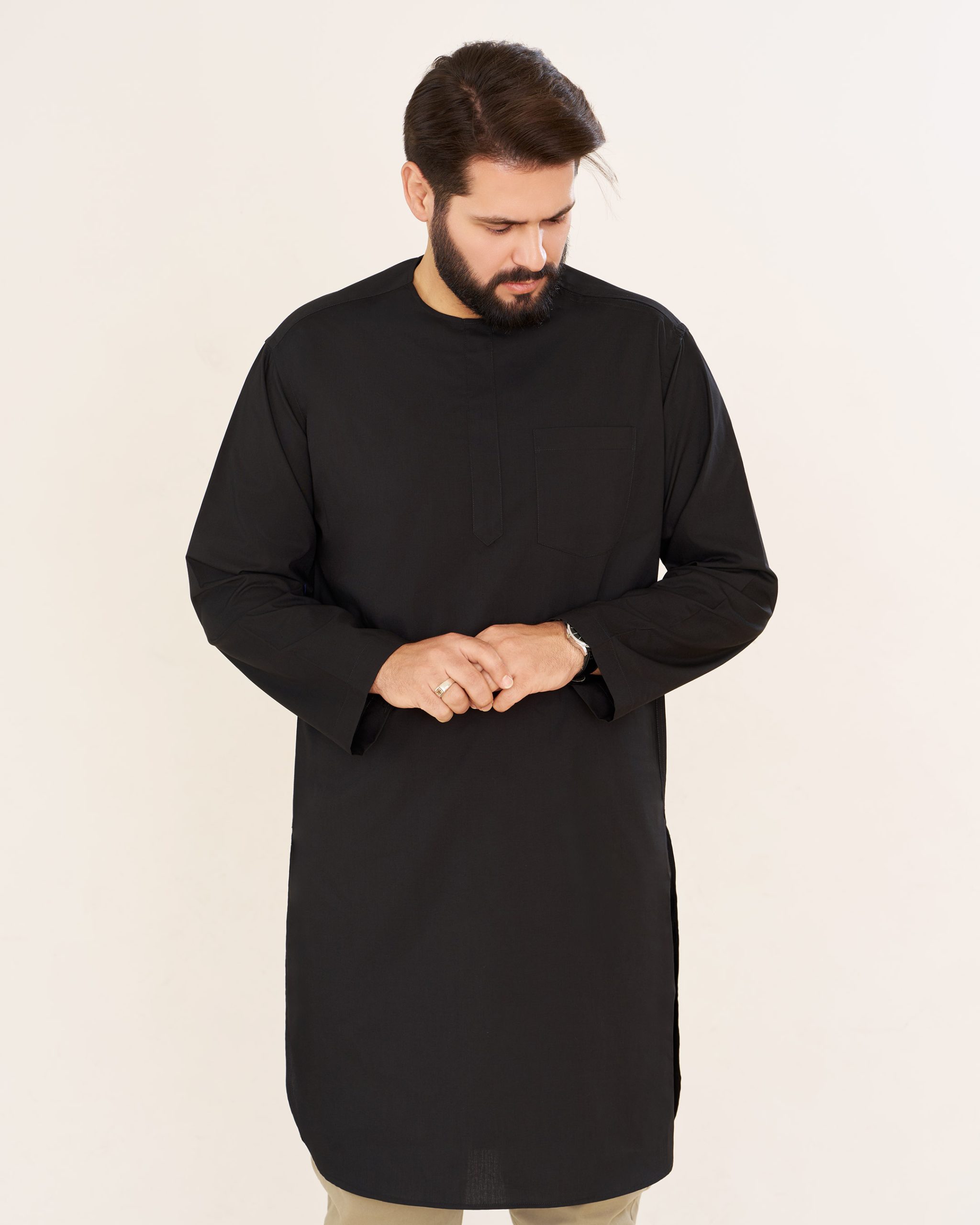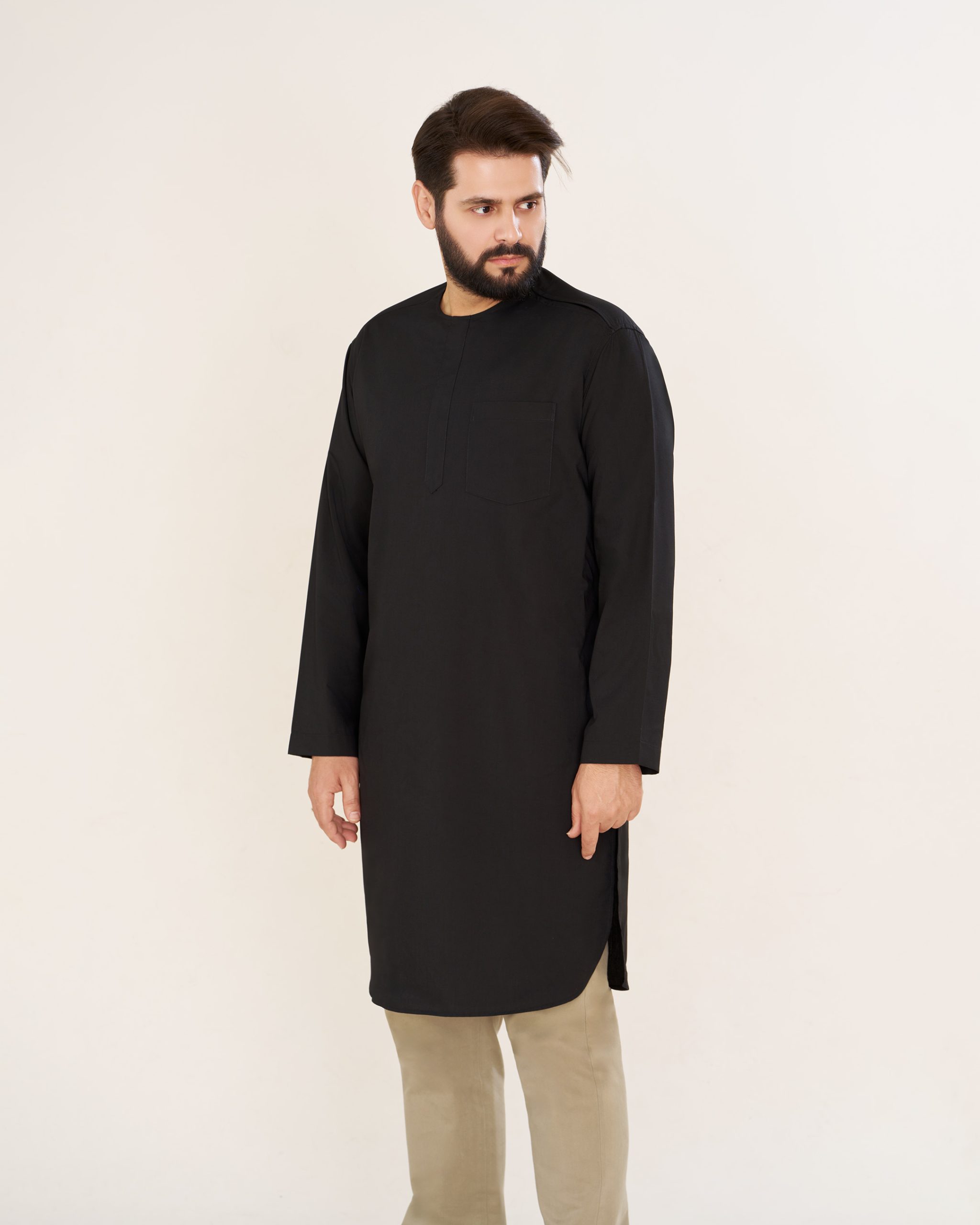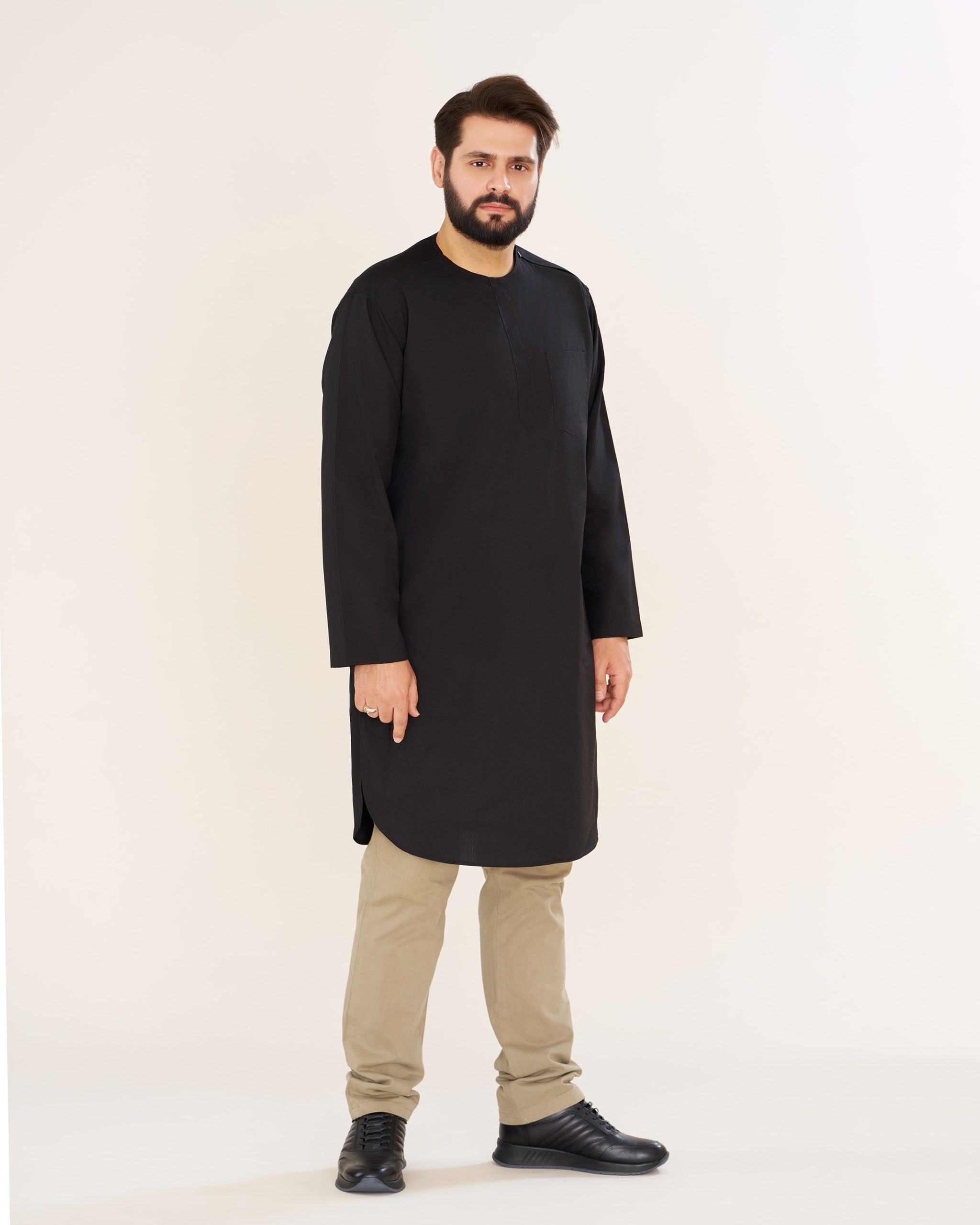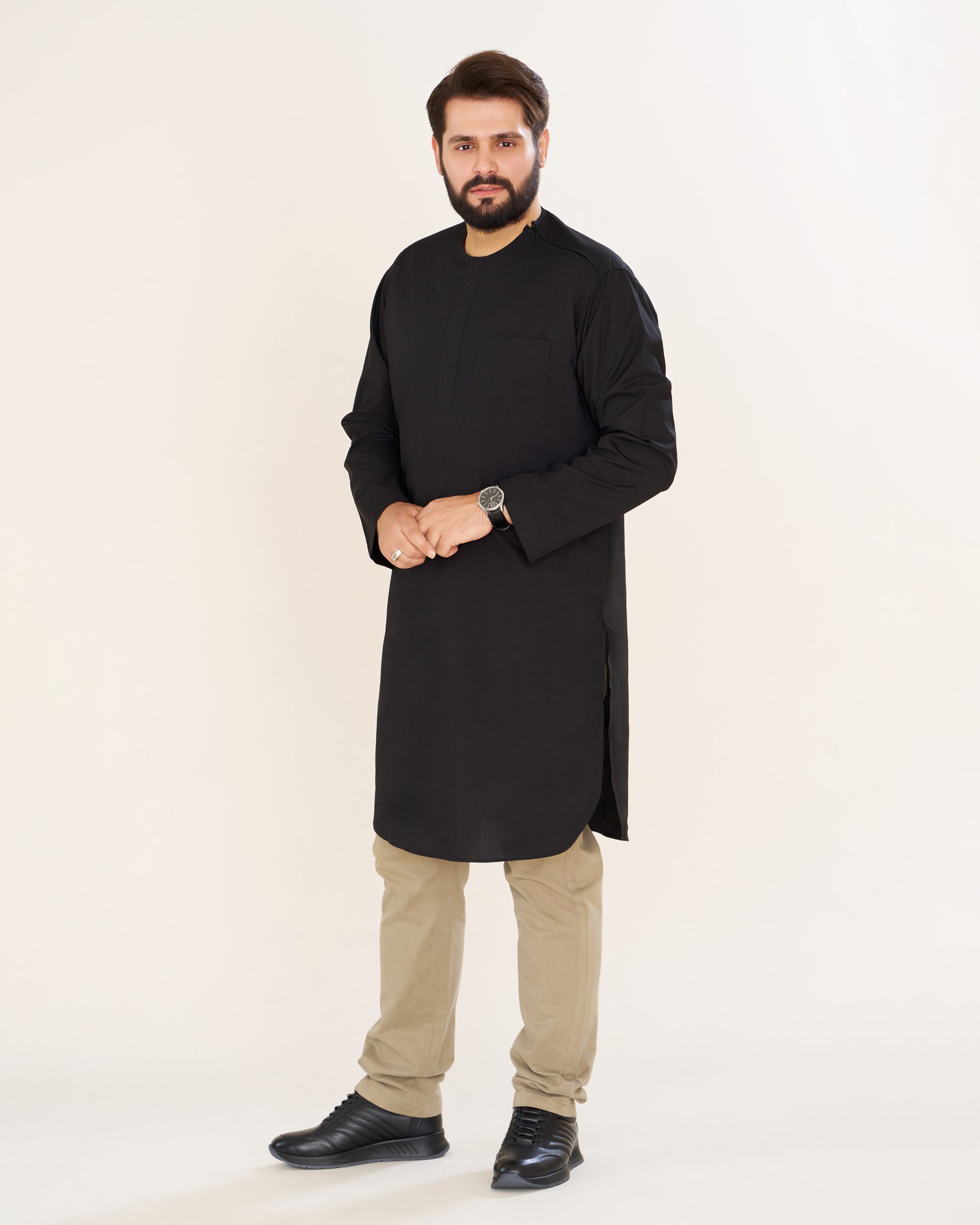 پیراهن پاکستانی مشکی یقه آخوندی مردانه PM22001