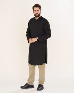 پیراهن پاکستانی مشکی بدون یقه زیپی مردانه PM22007