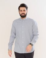 پیراهن پنبه راه راه زمینه طوسی کم رنگ یقه فرنچ کد PS21173