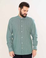 پیراهن یقه فرنچ پارچه پنبه راه راه سفيد سبز کد PS21171