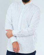 پیراهن پنبه راه راه سفید آبی یقه فرنچ کد PS21084