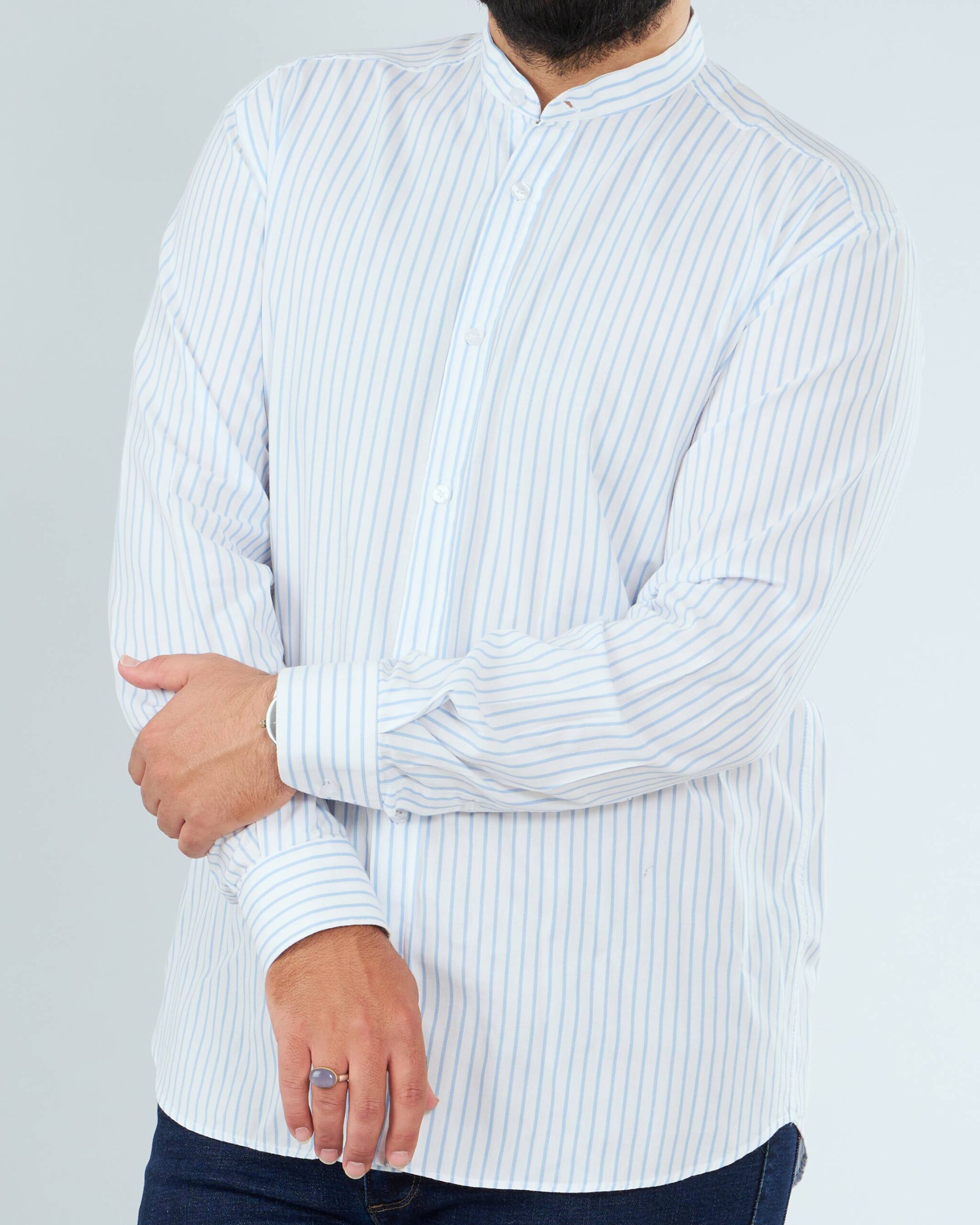 پیراهن اسپرت تمام دکمه یقه آخوندی کد PS21136