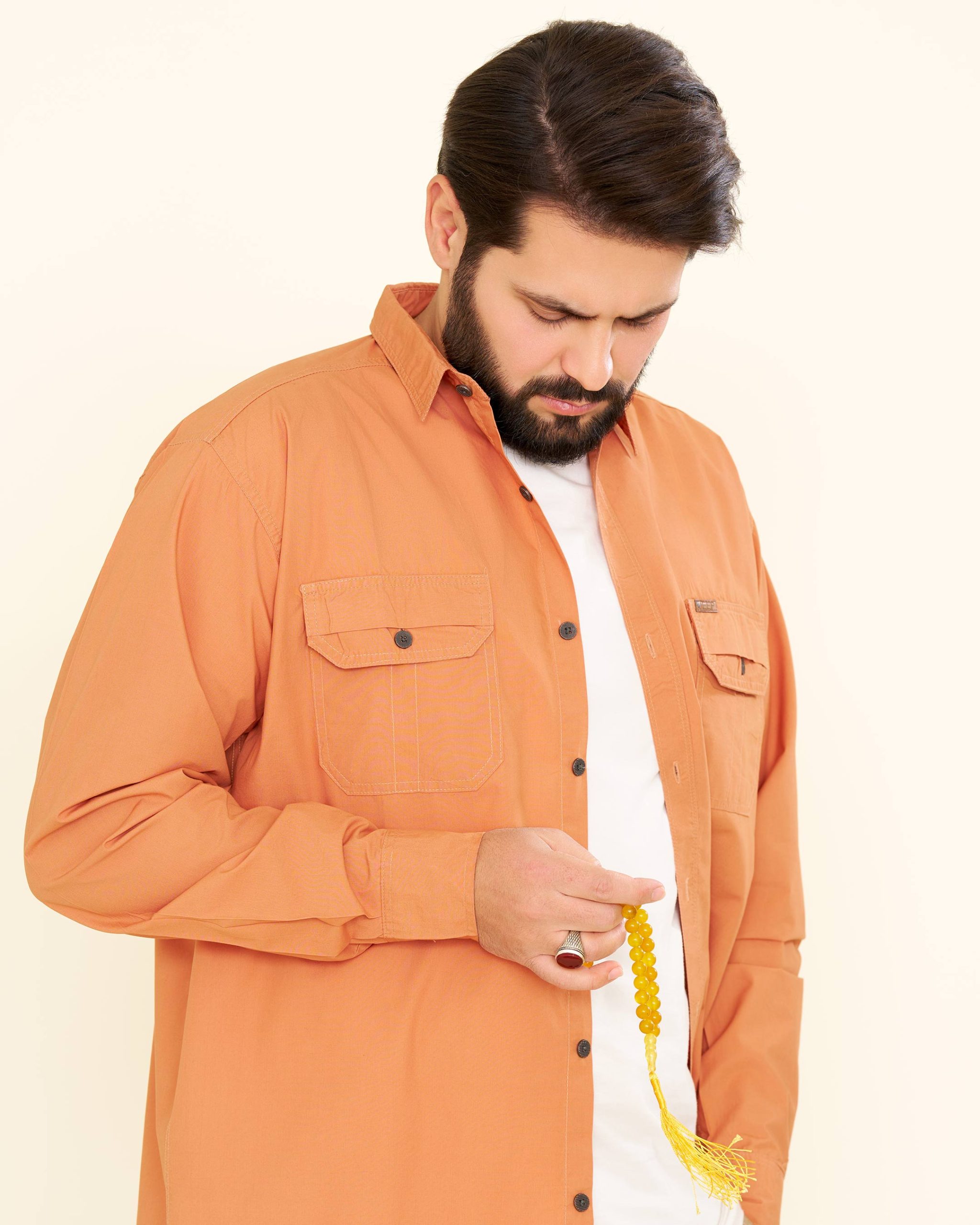 👕 نام محصول: پیراهن دو جیب کتان طرح جیپ – آستین بلند